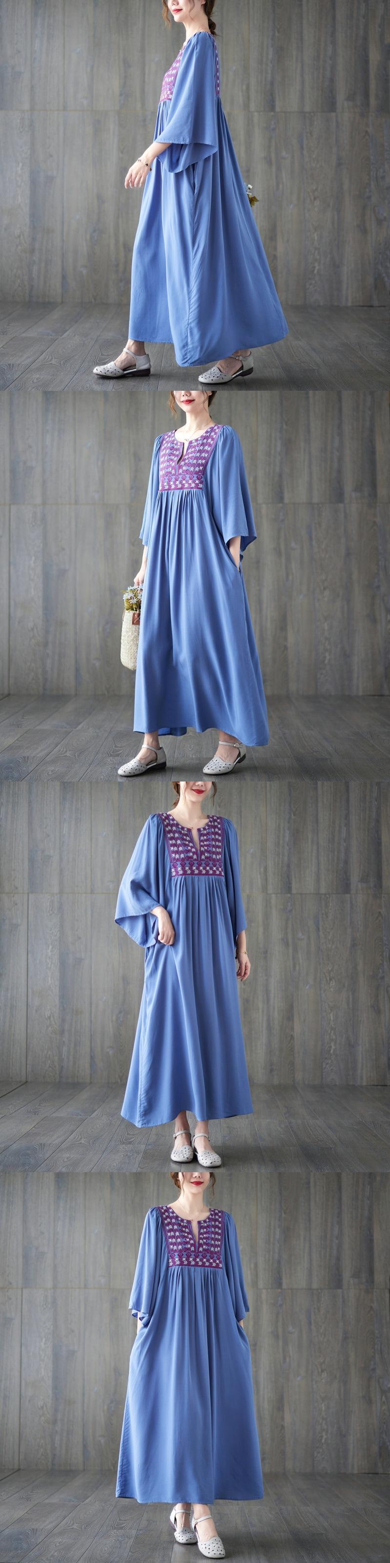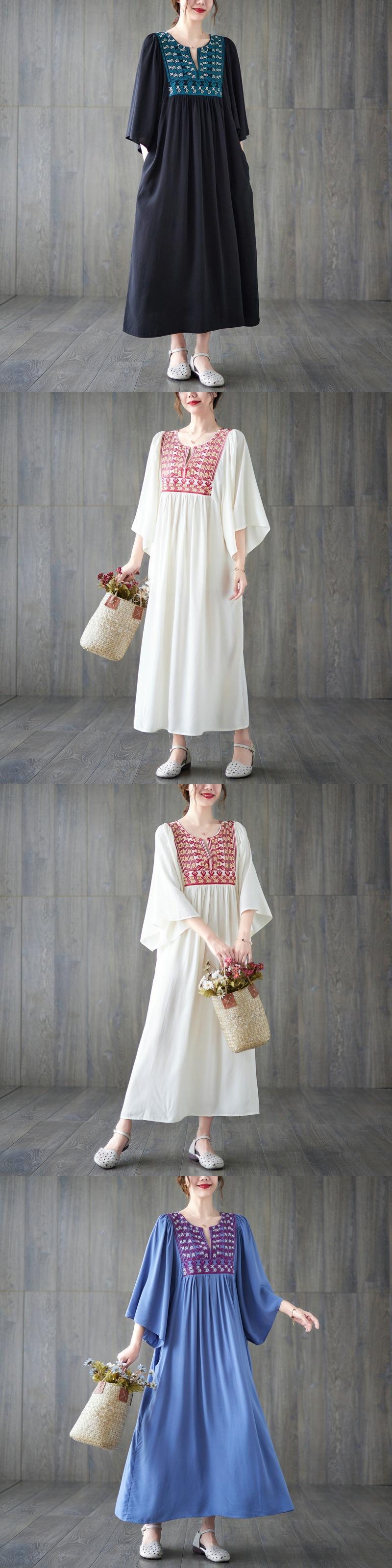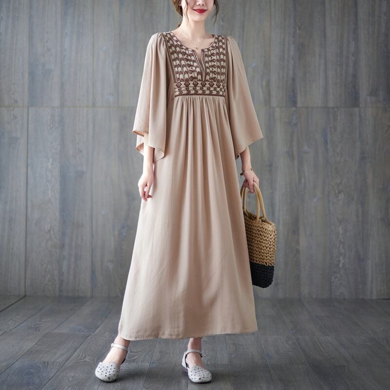 送料無料 サマードレスの女性 2023 スタイルソリッドルーズ刺繍ロングドレスストリートヴィンテージドレスパーティードレス 夏物 ソリッドカラー ビンテージ AE080775903876480