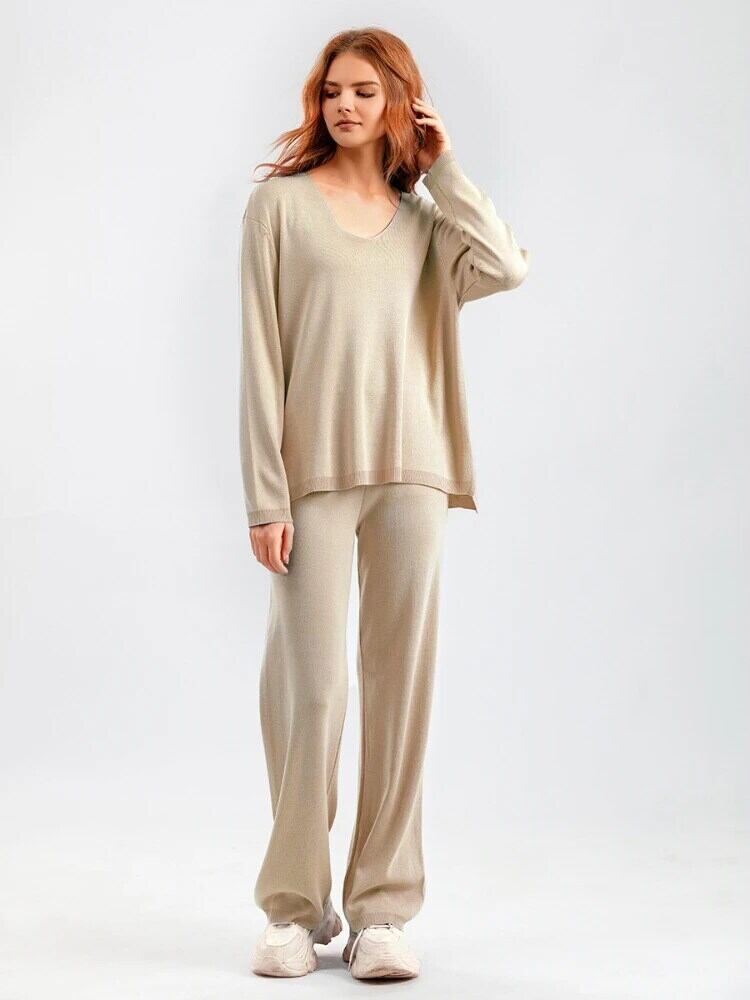 送料無料 秋の女性のセーター 2 点セットソリッドニット薄い V ネックプルオーバーウエストパンツセット女性 2023 オータム 秋物 Vネック ソリッドカラー AE0807722125290946 | 女性の為の通販サイト-fashion navi