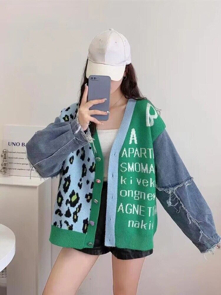送料無料 セーター女性の冬 2023 スタイル V ネックボタンヒョウニットカーディガンコート女性トップスヴィンテージカーディガン女性 ウィンター 冬物 Vネック ビンテージ AE0807775489258958