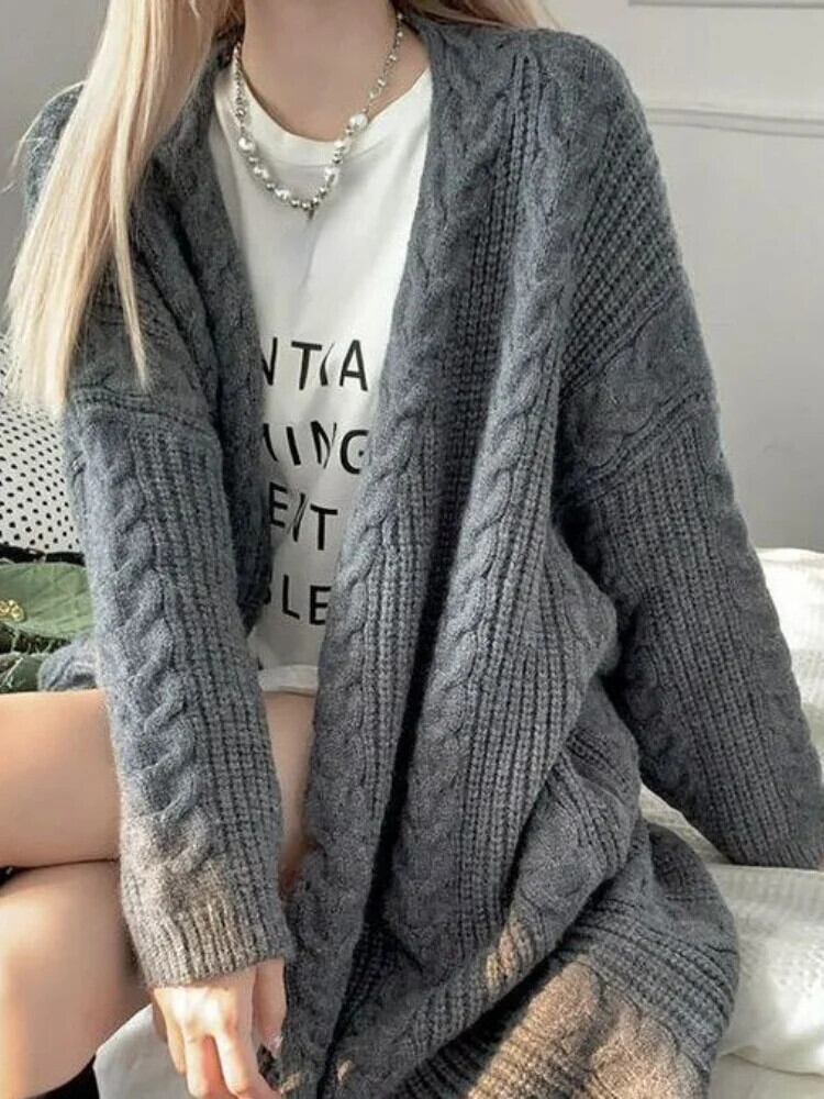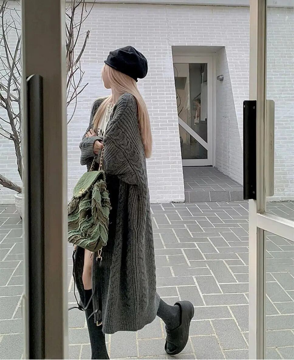 送料無料 女性の冬のニットカーディガンレトロセーター固体ルーズロングコート暖かい厚いジャケット女性ストリート ウィンター 冬物 ソリッドカラー AE0807721553556280