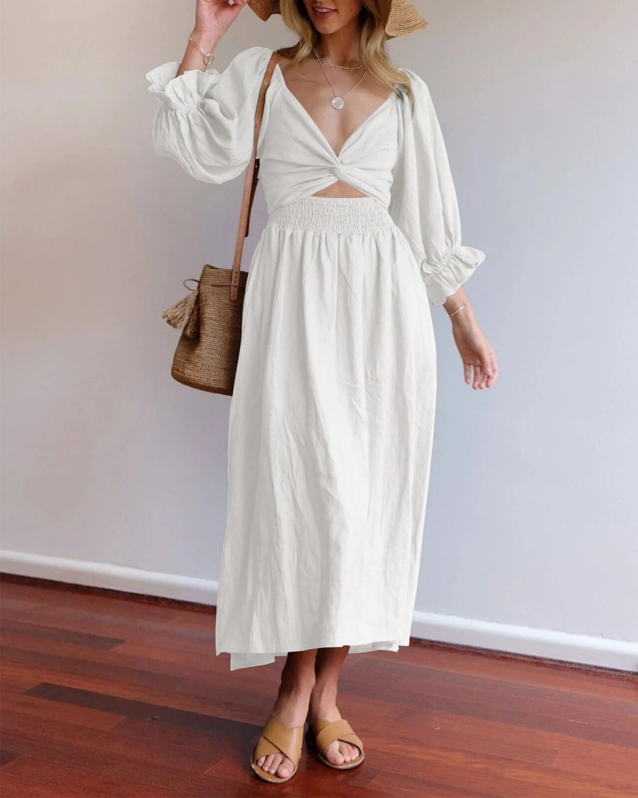 送料無料 ドレス女性 2023 夏ソリッド V ネックグリーン A ライン背中の開いたストリート女性ロングドレスローブ サマー 夏物 Vネック Aライン ソリッドカラー AE0807772475952811