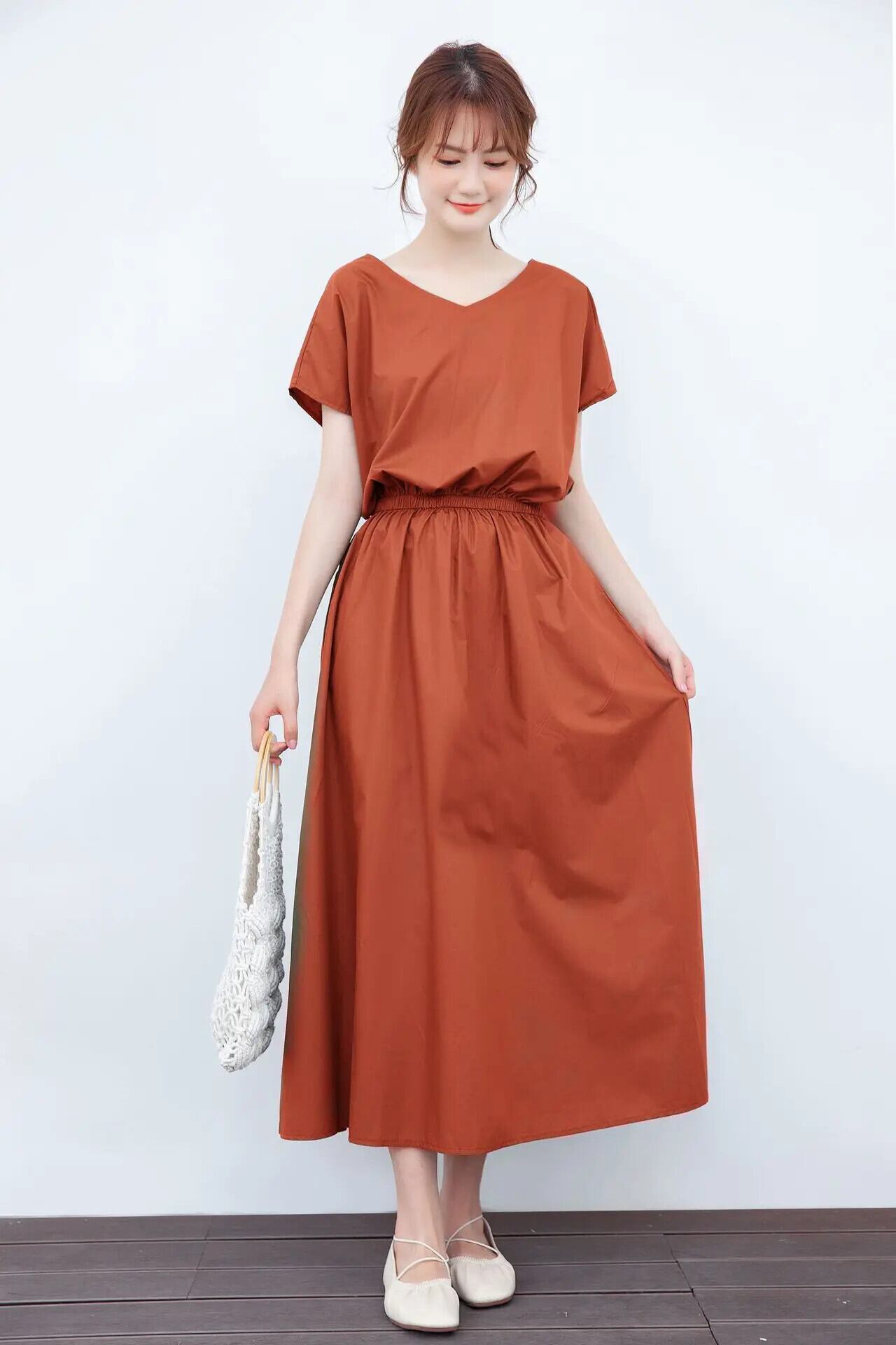 送料無料 サマードレス女性固体女性のシャツドレス V ネック半袖ストリートドレスロングローブ ショート ハーフスリーブ 夏物 Vネック ソリッドカラー AE0807739732713553