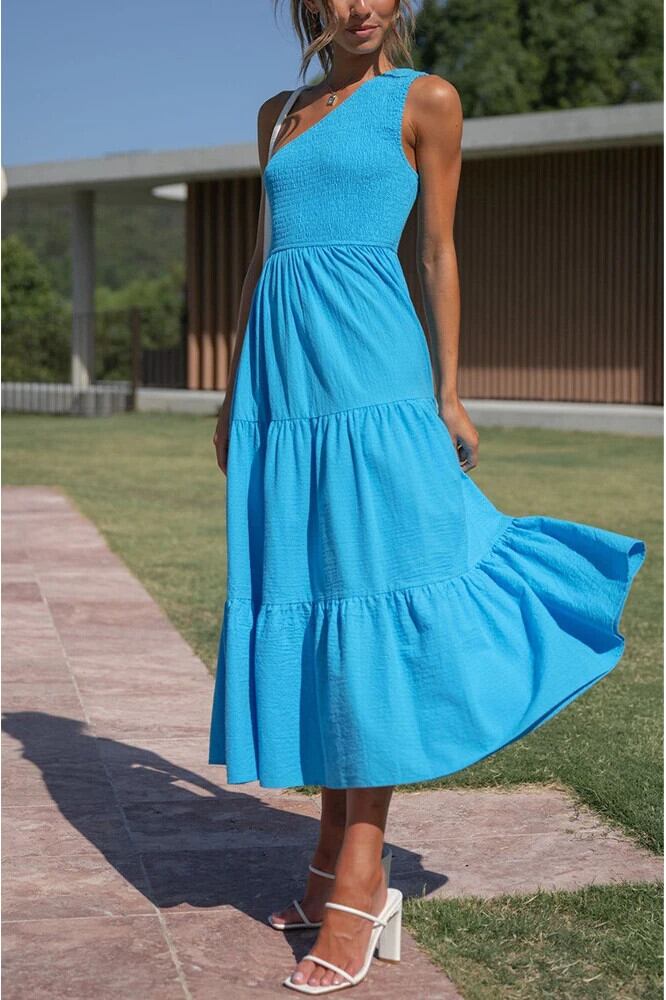送料無料 サマードレス女性 2023 固体プリーツノースリーブドレスストリート女性グリーンドレスドレス 夏物 ソリッドカラー AE0807785513278556