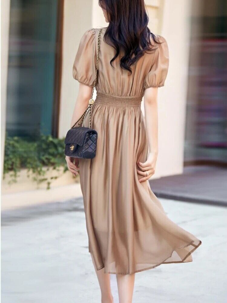 送料無料 夏の女性のドレス 2023 ルーズ半袖 V ネックブラックロングドレスヴィンテージストリートローブ ショート ハーフスリーブ サマー 夏物 Vネック ビンテージ AE0807774129042354