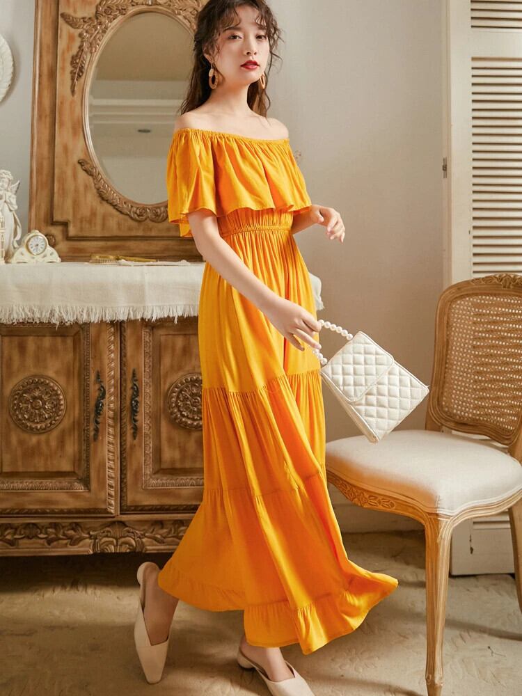 送料無料 女性のサマードレス 2023 ルーズバックレスストレートカラーロングドレスホリデーソリッドカラーの女性のセクシーなイブニングドレス 夏物 AE0807756693000917