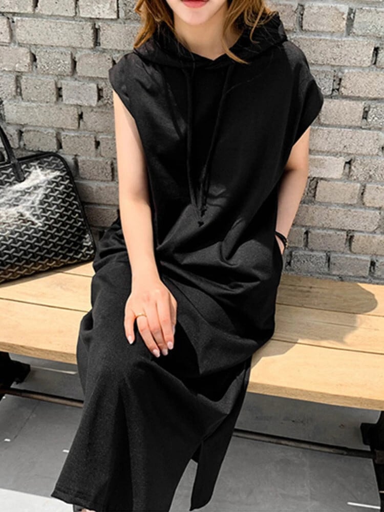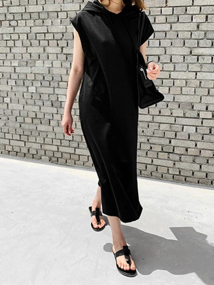 送料無料 サマードレスの女性ソリッドフード付きスプリットドレス女性ストリートルーズヴィンテージローブ mal 夏物 ソリッドカラー ビンテージ AE0807754966251091