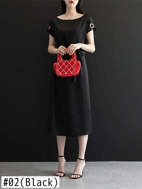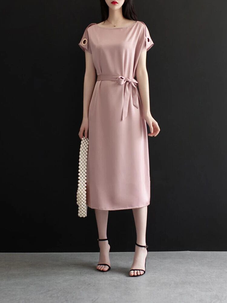 送料無料 ドレスの女性 2023 春夏ドレス女性のレースアップラウンドネック気質ミッドレングススカートストリート スプリング 春物 サマー 夏物 Oネック AE0807729602062575