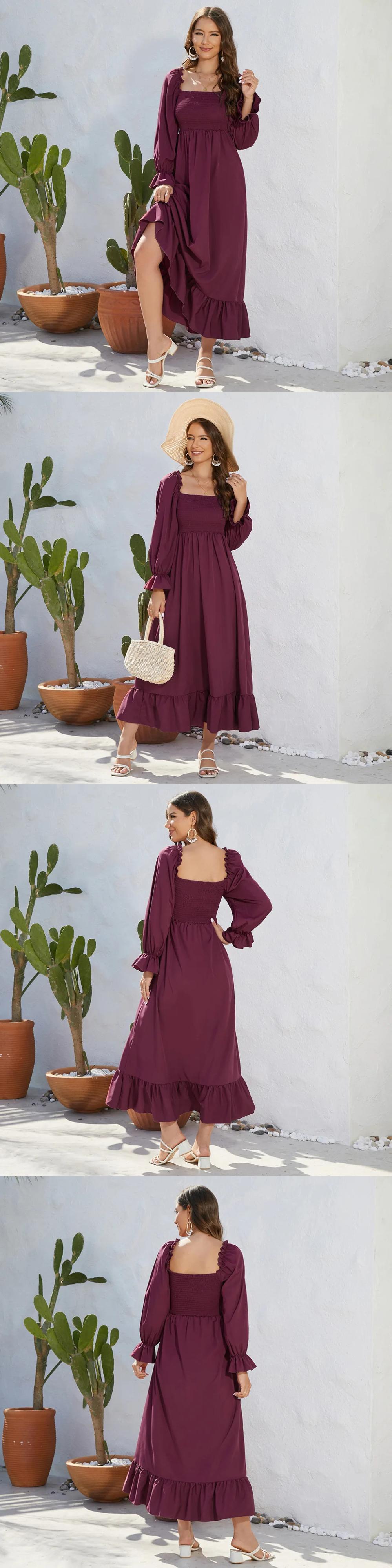 送料無料 夏ドレス女性グリーンスクエアカラーセクシードレスパーティーフリルエッジストリート長袖ドレス ロング サマー 夏物 スクウェア AE0807772395746138 | 女性の為の通販サイト-fashion navi