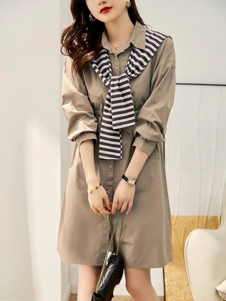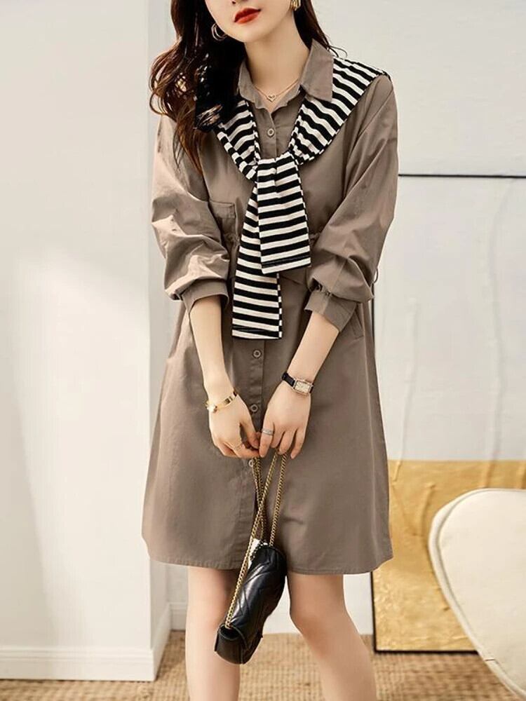 送料無料 ドレス女性 2023 夏フレンチシャツドレスヴィンテージルーズミニドレスオフィス固体ロングローブ mal ドレス サマー 夏物 ソリッドカラー ビンテージ 会社 学校 通勤や通学にも AE0807733292439420