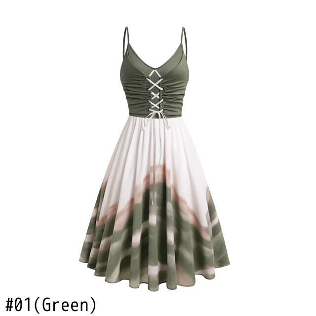 送料無料 女性 Fairycore タイダイプリントレースアップドレスサマーカラーブロックドレススパゲッティストラップミディキャミローブ 夏物 AE1212665655652625948641