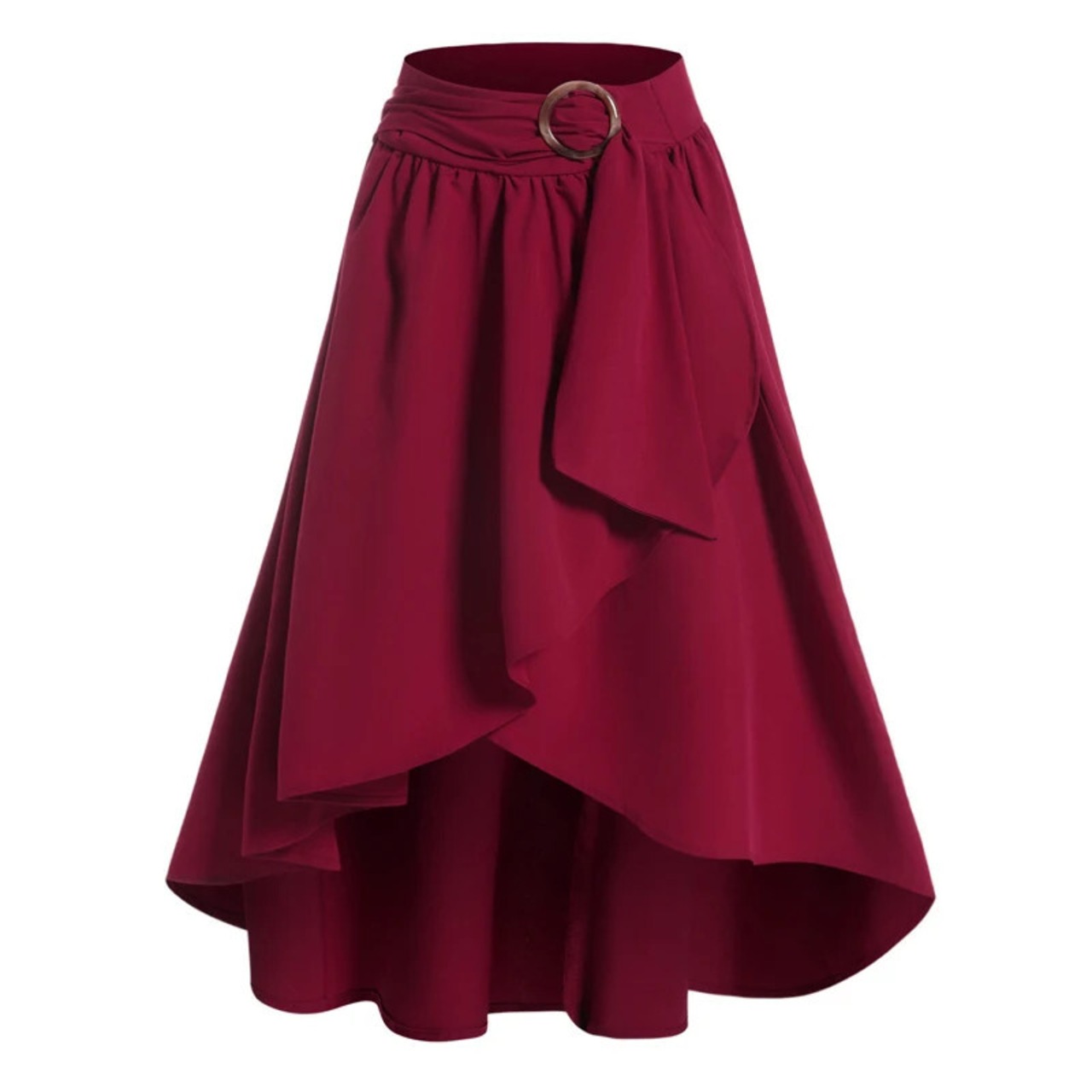 送料無料 女性春スカートオーバーレイ無地セルフベルト付きフリル非対称裾ジップアップミディスカート春夏 スプリング 春物 サマー 夏物 ハーネス ソリッドカラー AE1212665655613244834154