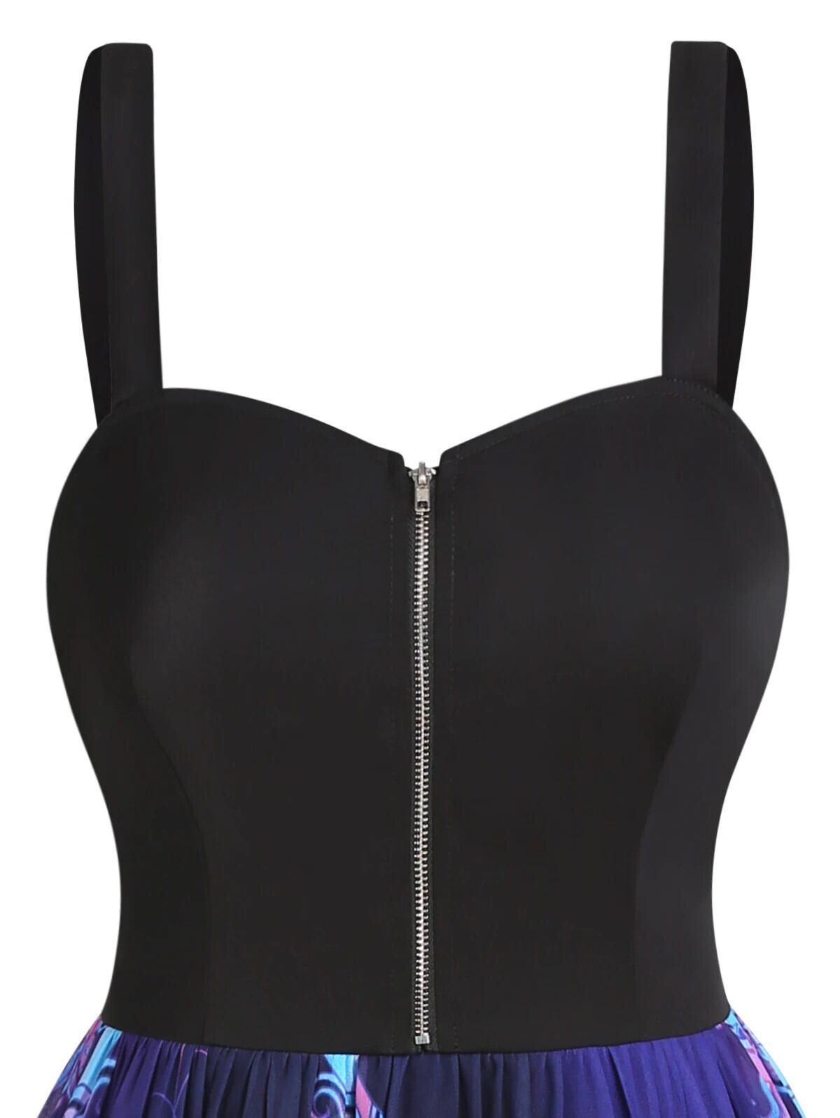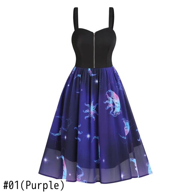 送料無料 パープルカラーパーティーシフォンオーバーレイロードレス天体日月プリントコンボハーフジッパーバックレスキャミローブ AE1212665655683437717912