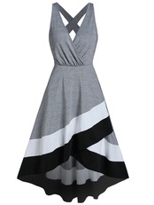 送料無料 ヒットカラー ローカット プランジ カラーブロック クリスクロス ロードレス ミディ プランジング ネック ノースリーブ ストレッチ ジャーケン AE1212665655695277991285