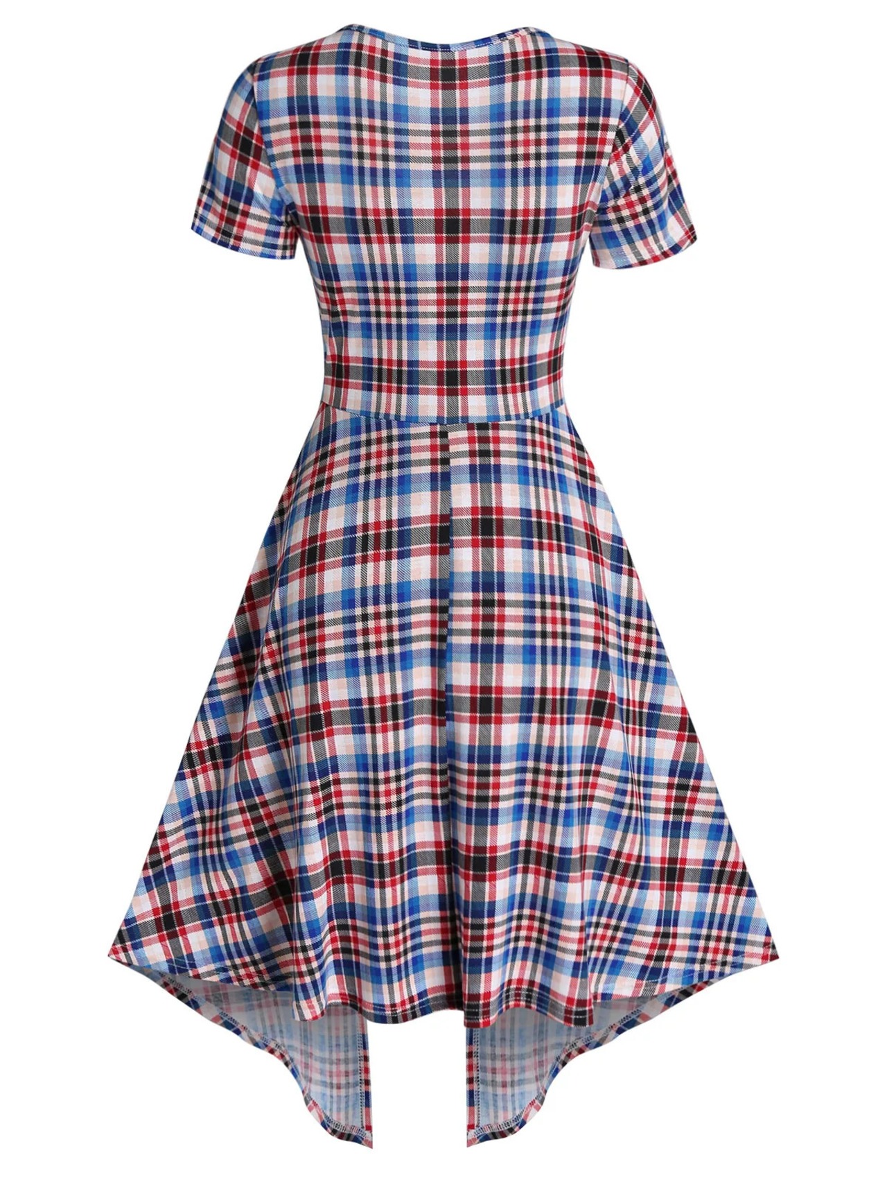 送料無料 チェック柄 2 で 1 ドレス 2023 半袖ローブチェック柄プリントフェイクツインセットレースアップ Vestido Feminino 休暇パーティーストリート ショート ハーフスリーブ ファー AE1212665655632385557182