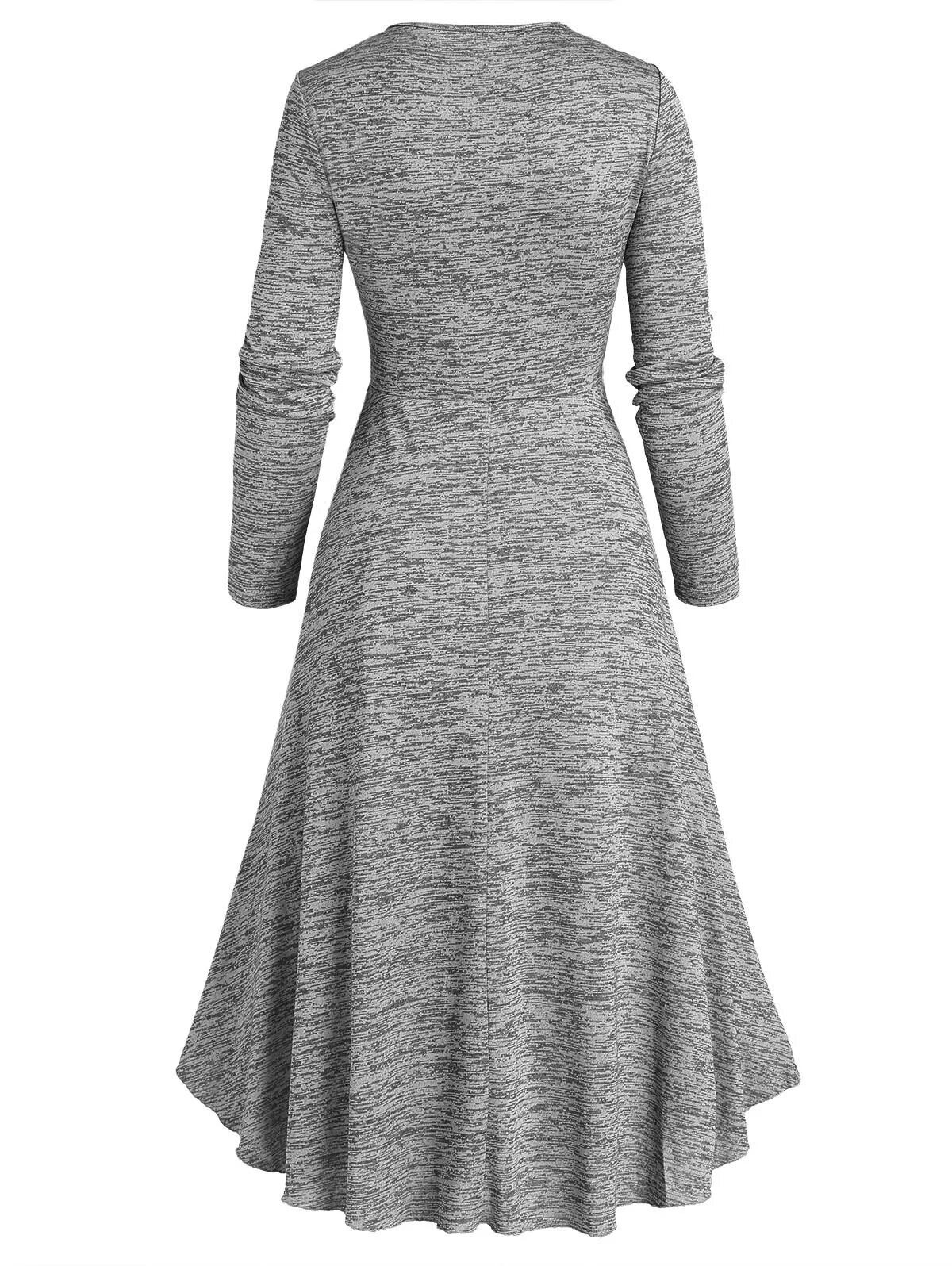 送料無料 スペース染料モックボタン締めフラウンス長袖ローミディドレスディップ裾秋ローブ女性 Vestido Feminino ロング オータム 秋物 AE1212665655699009644802