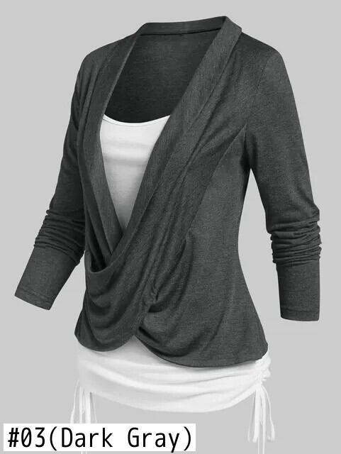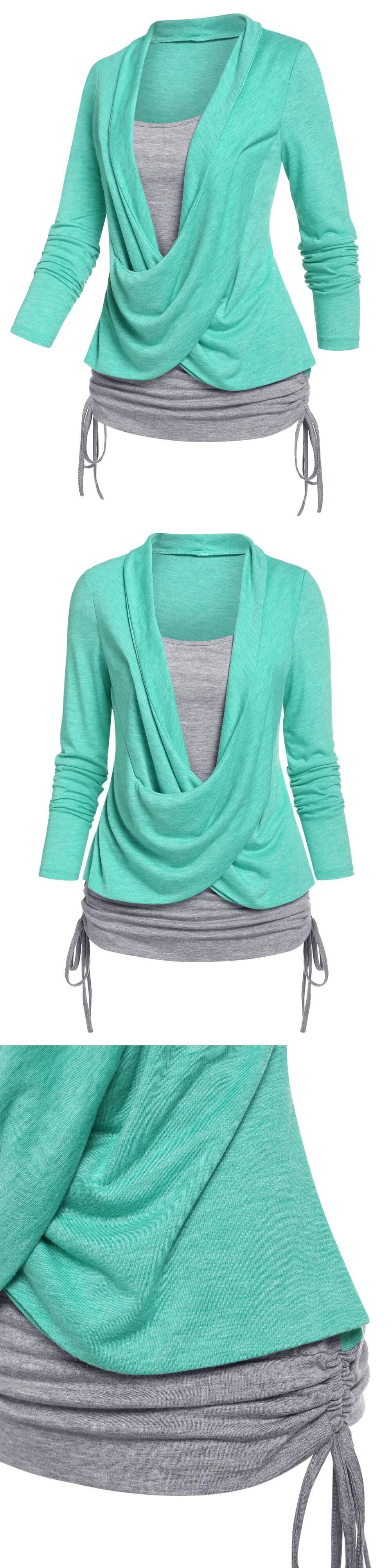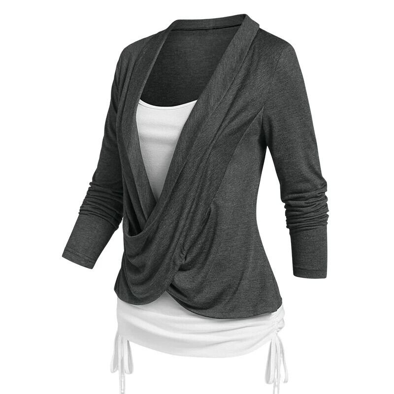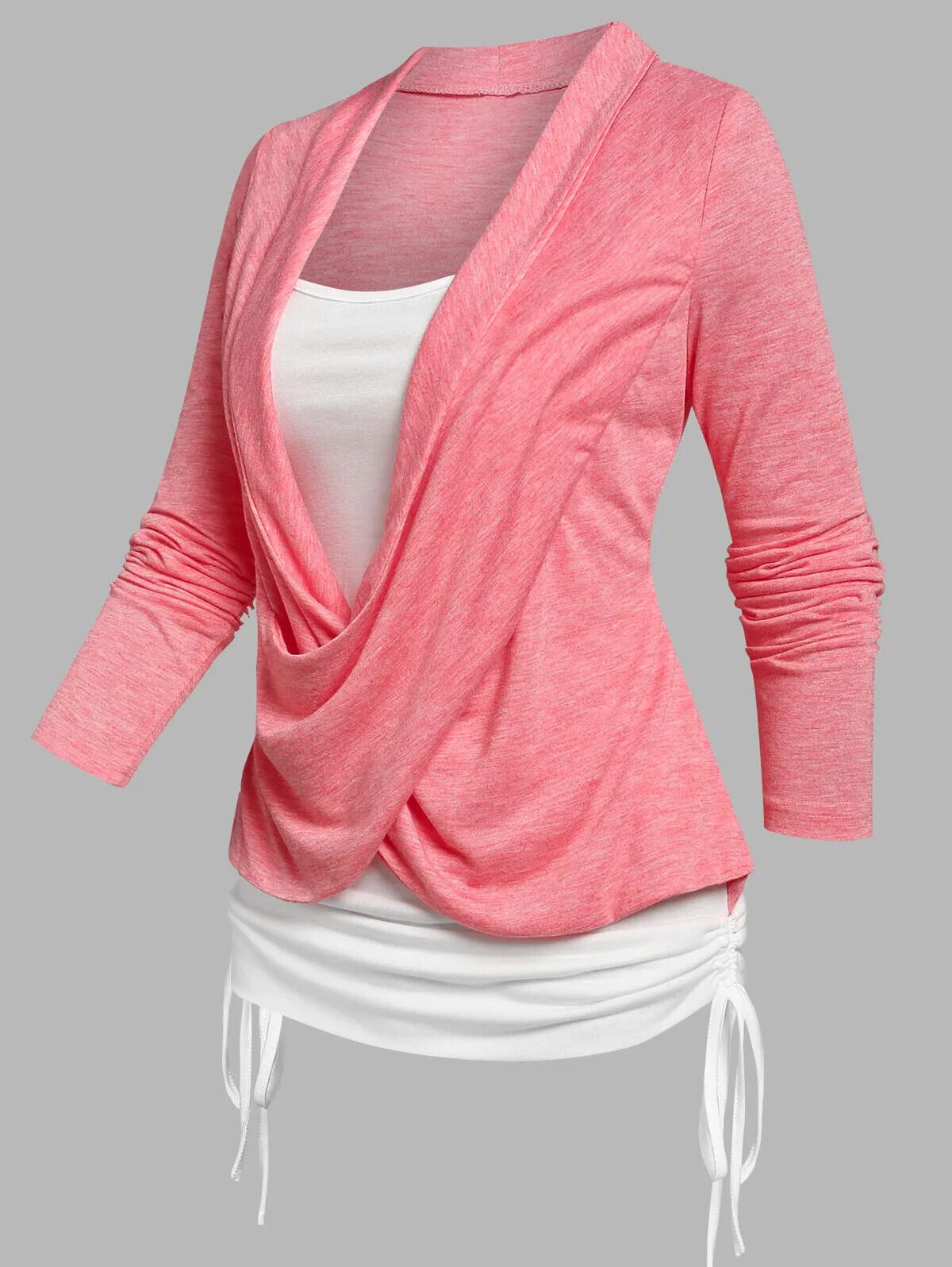 送料無料 クロスオーバーシンチヘザーフェイクツインセット Tシャツ女性 Tシャツ Tシャツ長袖 2 で 1 Tシャツ ロング レッド ファー AE1212665655615454714980