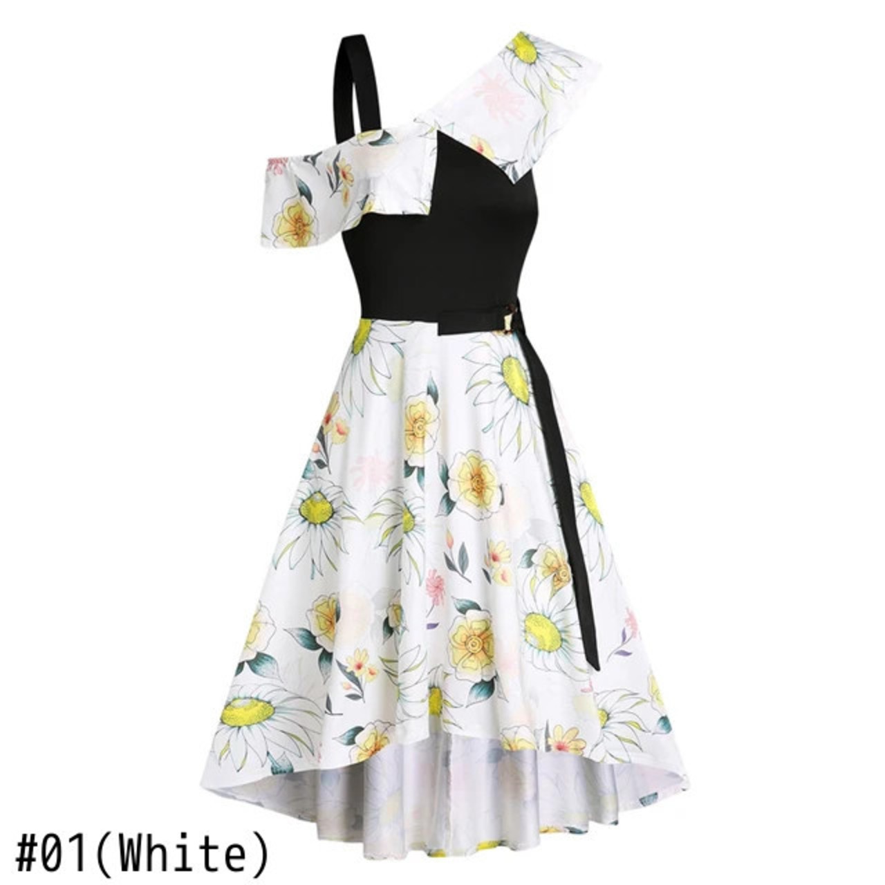送料無料 ひまわりプリント スキューカラー ロードレス ウエスト フラワープリント 花柄ドレス スラッシュネック ローブ 2023 フラワーデザイン AE1212665655660936454441 | 女性の為の通販サイト-fashion navi