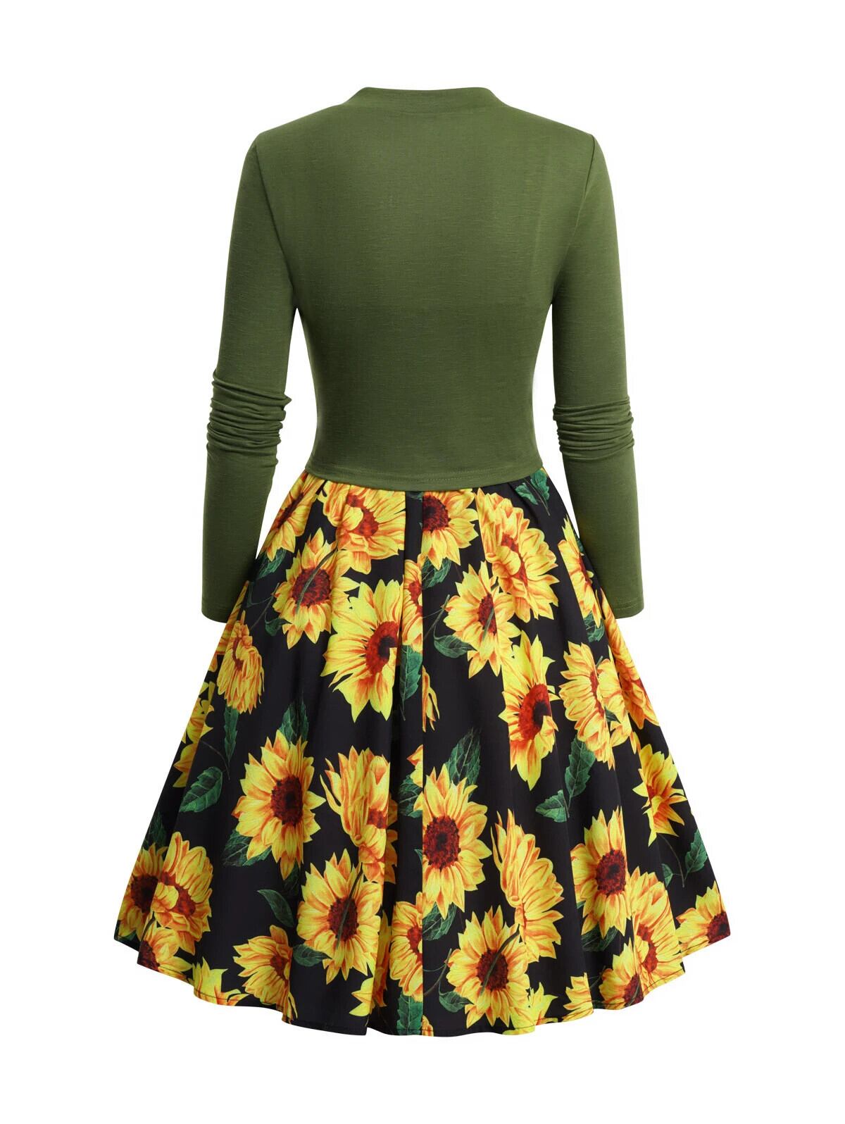 送料無料 Dressfo ドレス Traf なし レギュラー ミッドカーフ A ライン ポリエステル ひまわりドレス ローブ Aライン フラワーデザイン AE1212665655643114079149