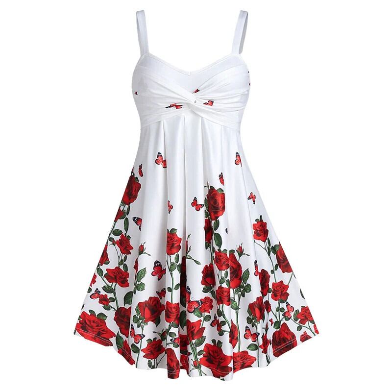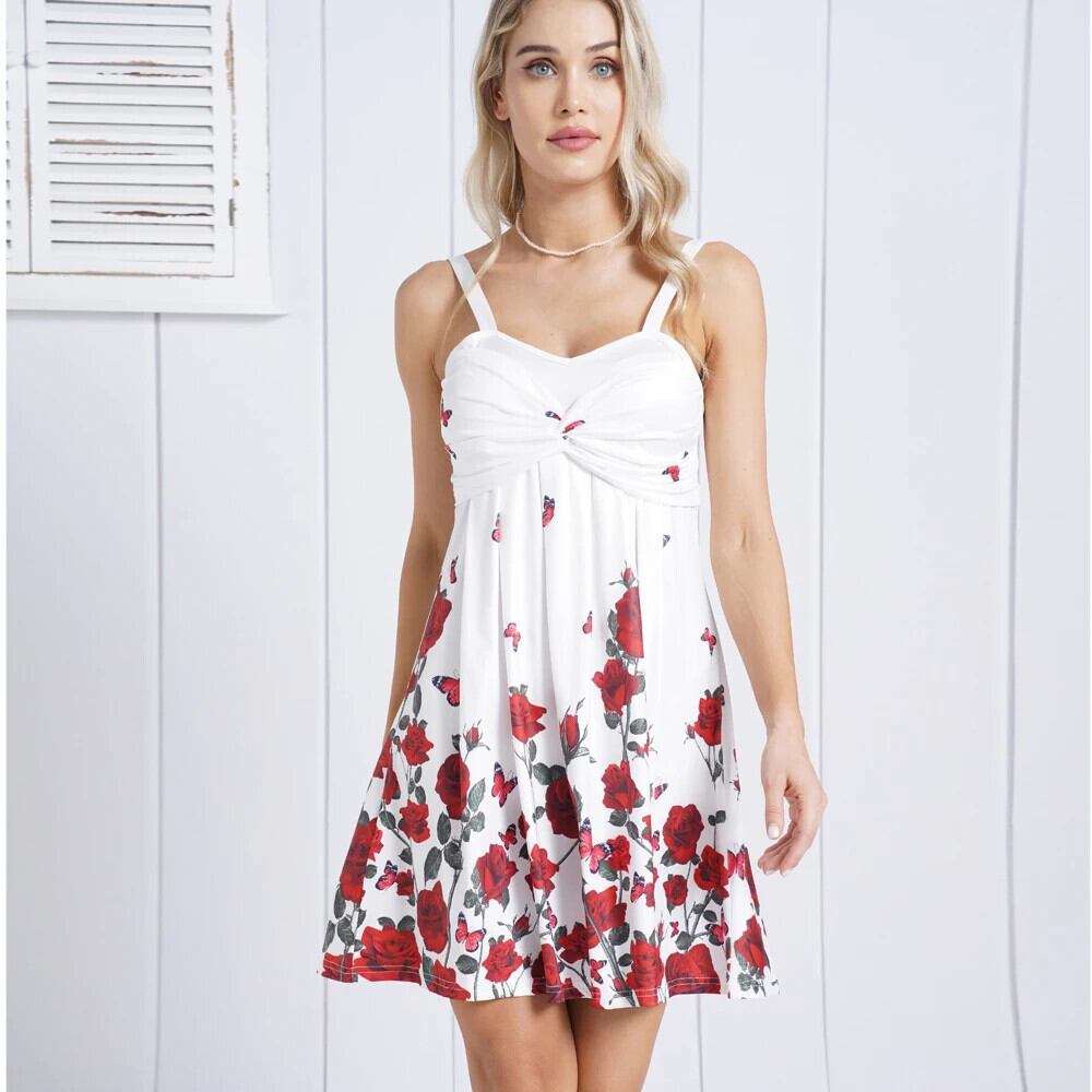 送料無料 ローズフラワープリントウエスト A ライン夏のセクシーなスパゲッティストラップ女性ミニナイトクラブパーティードレスホームドレス サマー 夏物 Aライン フラワーデザイン AE1212665655685388521639