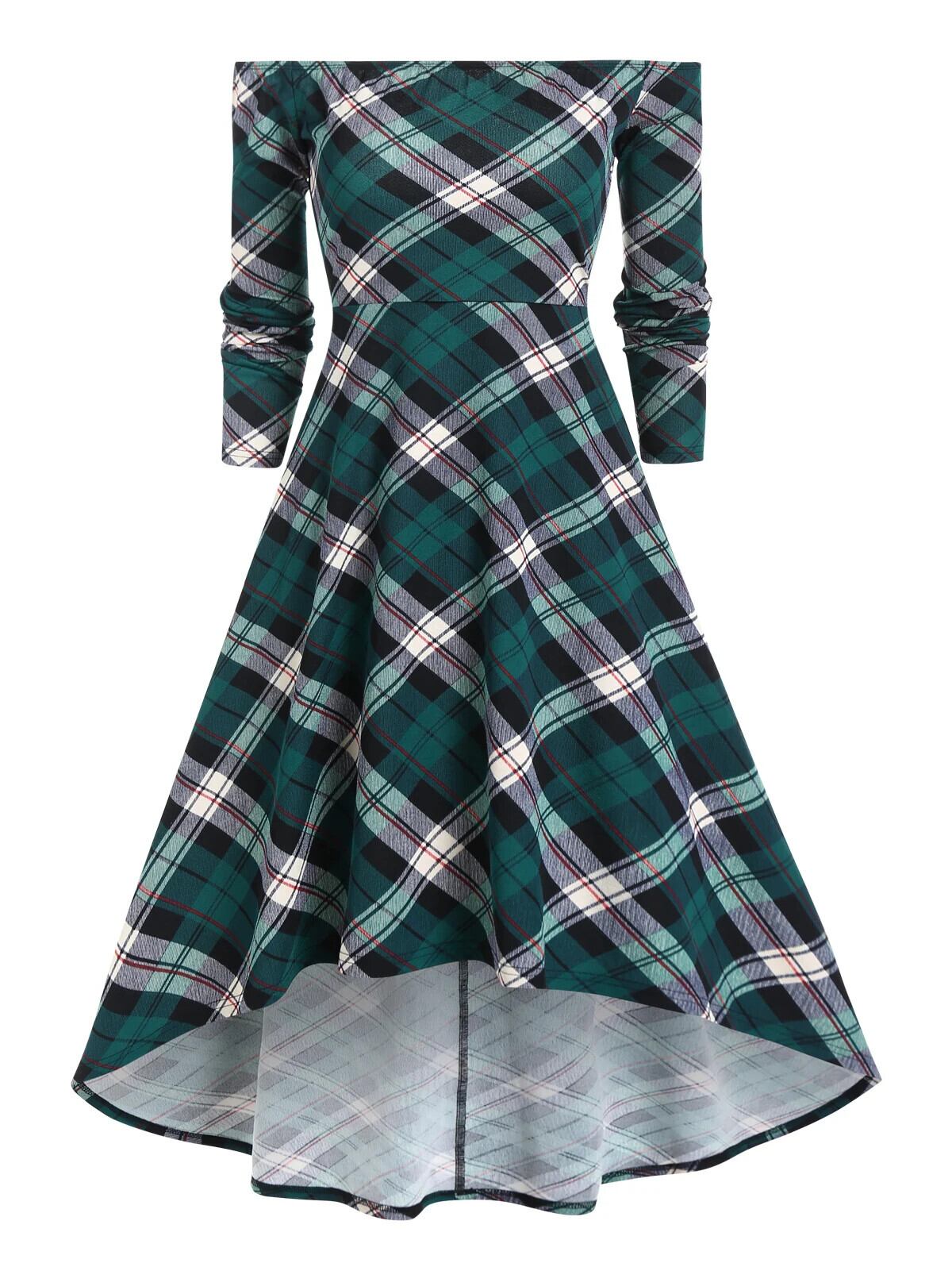 送料無料 春のオフショルダーチェック柄プリントローミディドレスとレースアップフード付きトップヴィンテージローブセット スプリング 春物 ビンテージ AE1212665655674576784943