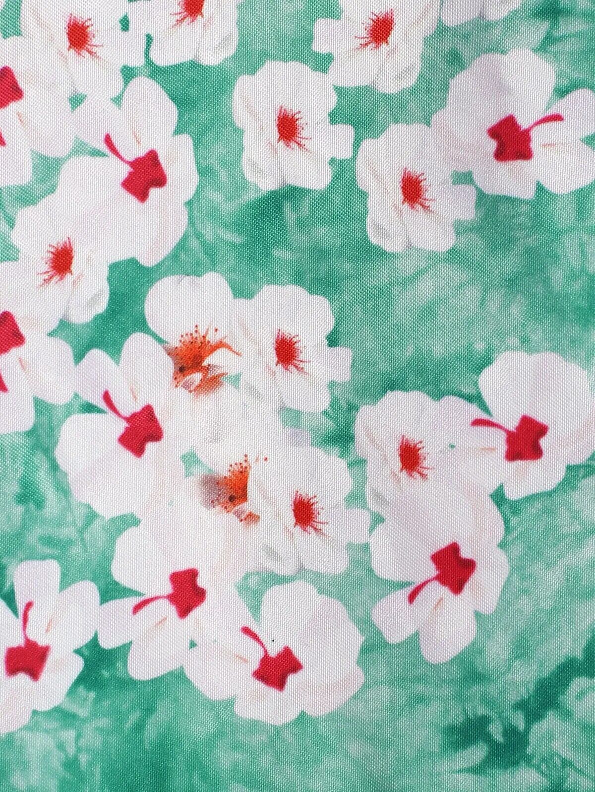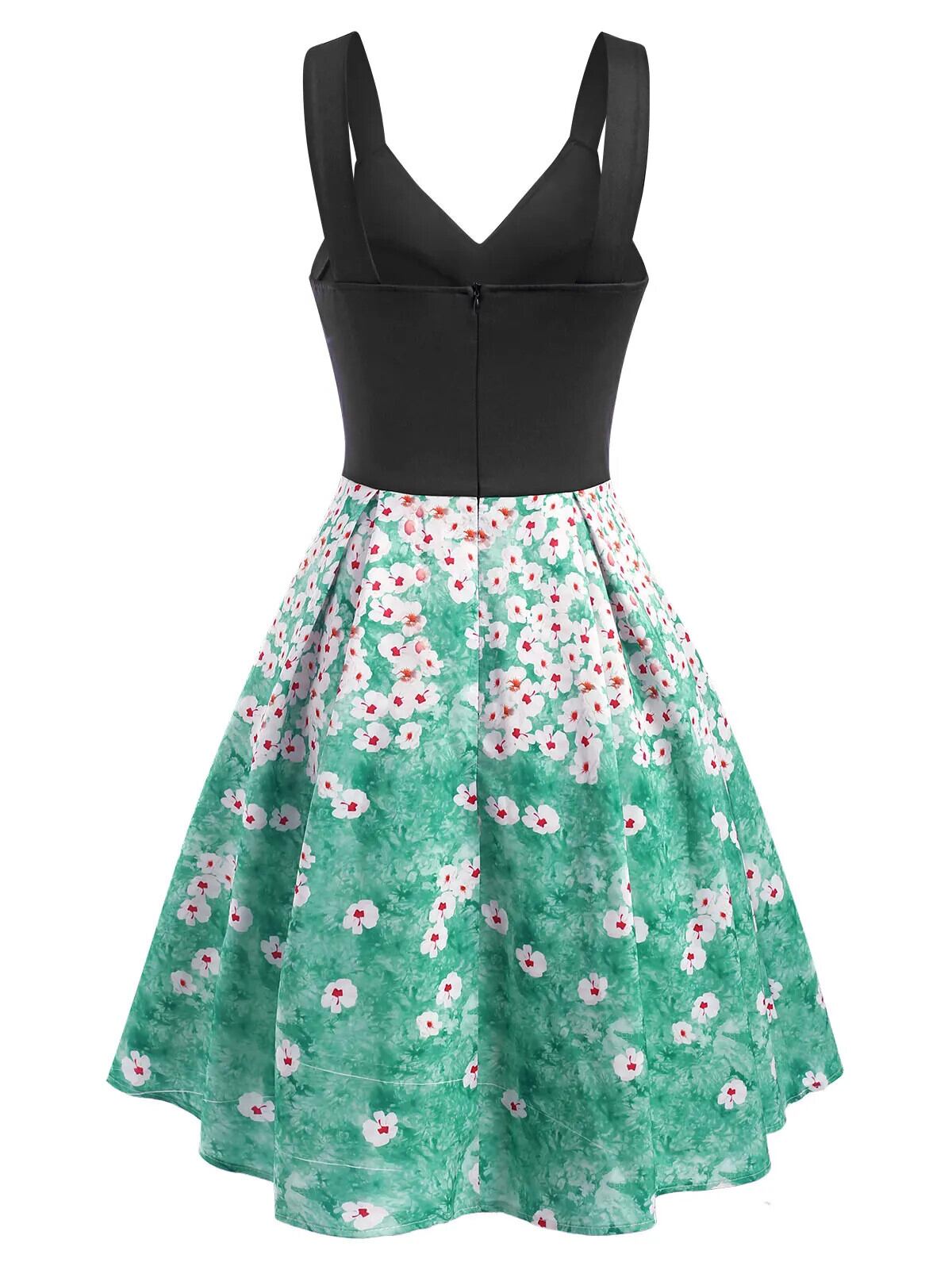 送料無料 女性レトロ花柄クロスオーバーヴィンテージサマードレスグリーンカラーナチュラルフラワープリントローブガーデンパーティー 夏物 フラワーデザイン 天然 ビンテージ AE121266565565113845375