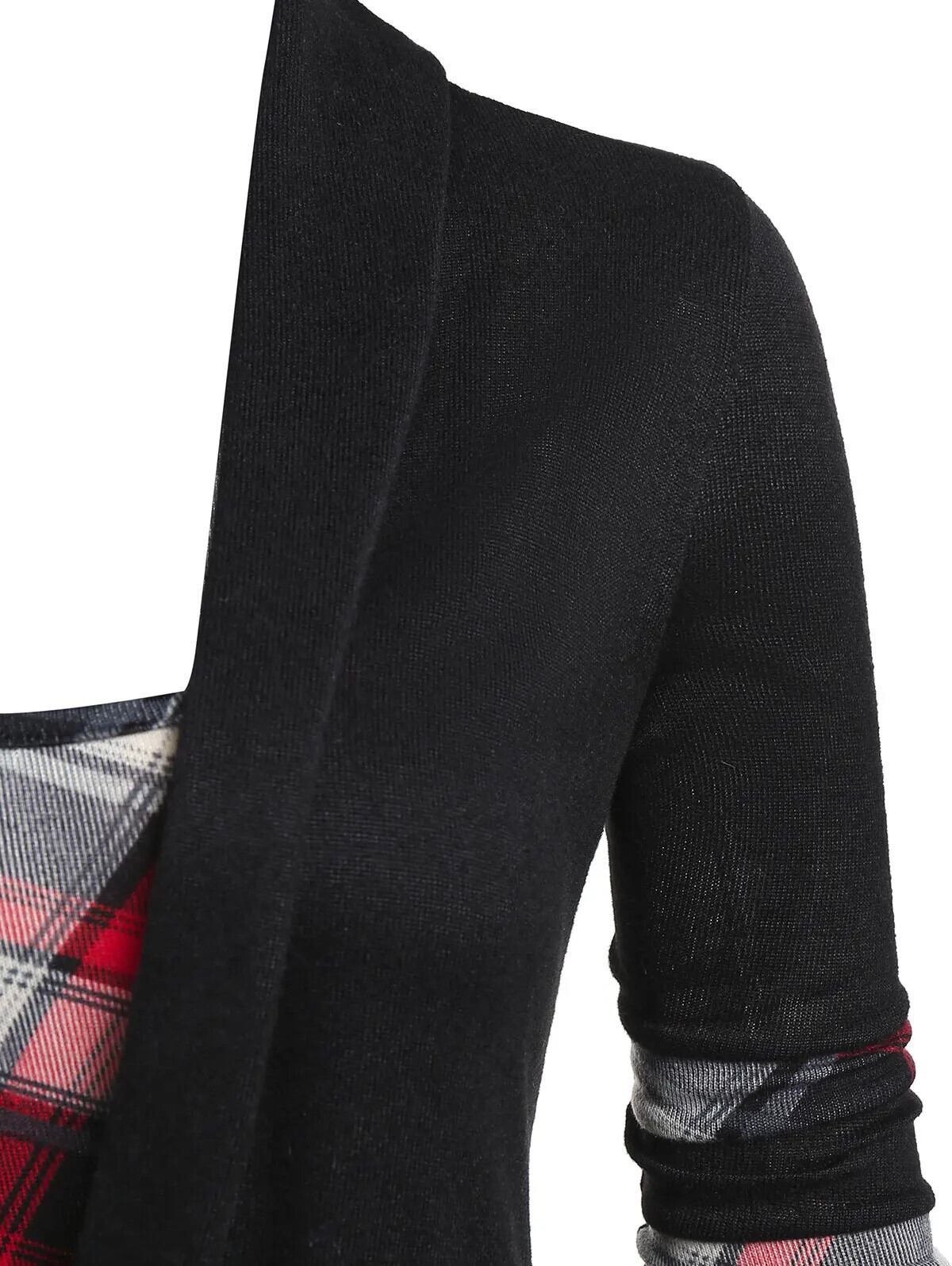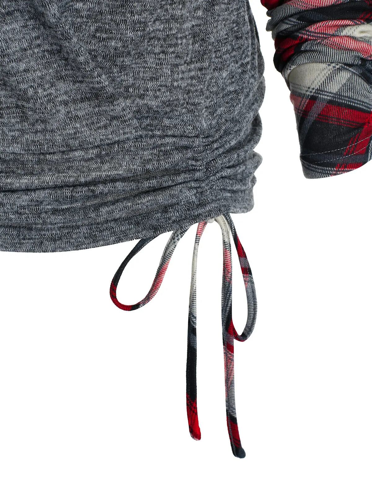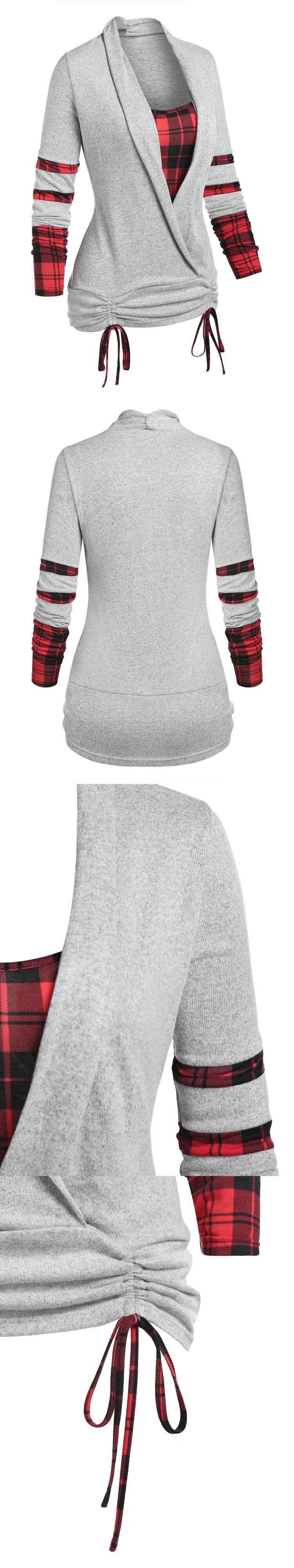 送料無料 チェック柄プリント締め杢フェイクツインセット Tシャツ女性 2 で 1 Tシャツ Twofer Tシャツ長袖 Tシャツ ロング レッド ファー AE1212665655641745827949