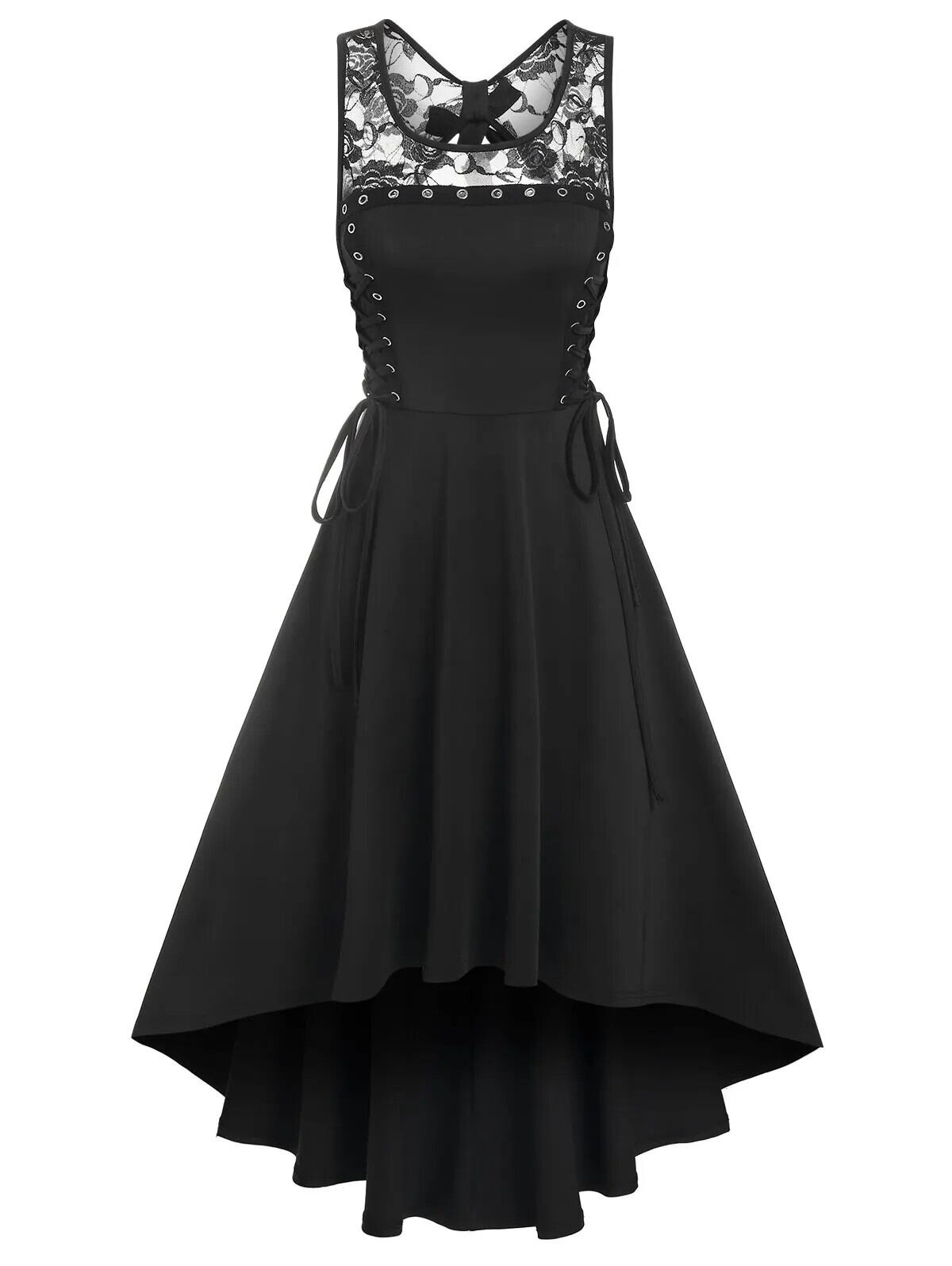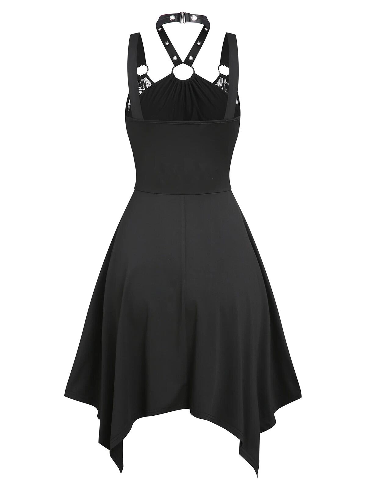 送料無料 フラワーレースパネルレースアップ O リングホルター非対称女性ハンカチ不規則な膝丈夏のパーティードレスイブニングウェア サマー 夏物 指輪 フラワーデザイン AE1212665655629976847238