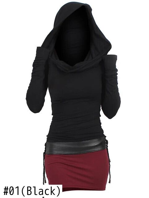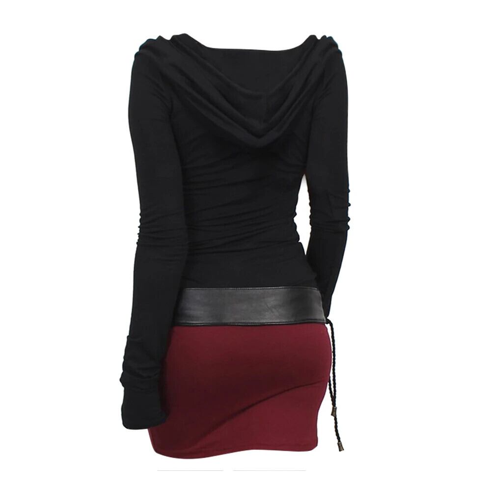 送料無料 フード付きツートーンベルト付き長袖ドレスバイカラーセクシーカウルフロントボディコンスリムミニドレス冬秋女性 ロング ウィンター 冬物 ハーネス AE1212665655612974103700