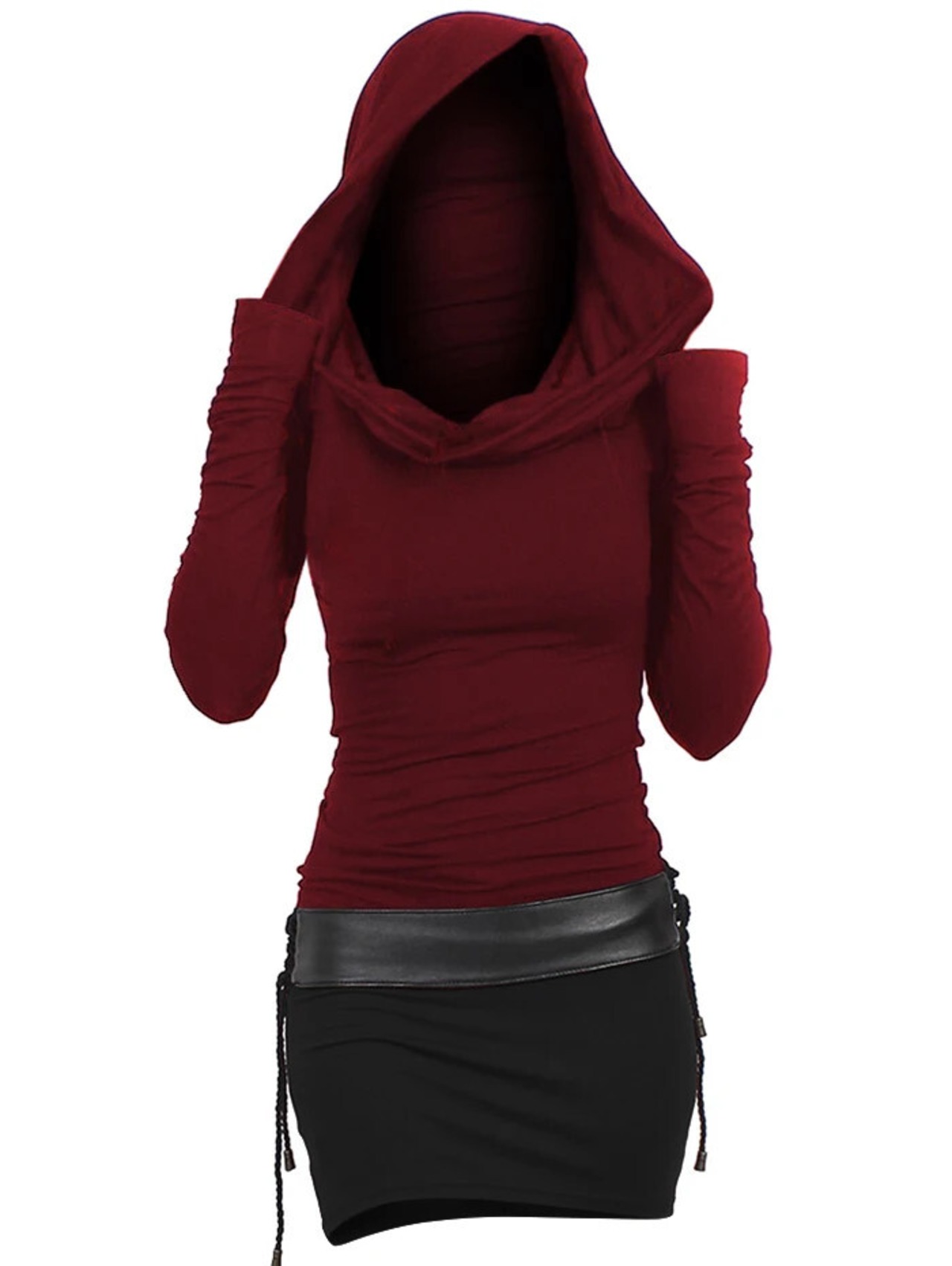 送料無料 フード付きツートーンベルト付き長袖ドレスバイカラーセクシーカウルフロントボディコンスリムミニドレス冬秋女性 ロング ウィンター 冬物 ハーネス AE1212665655612974103700 | 女性の為の通販サイト-fashion navi