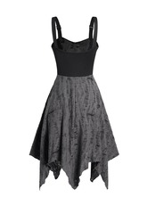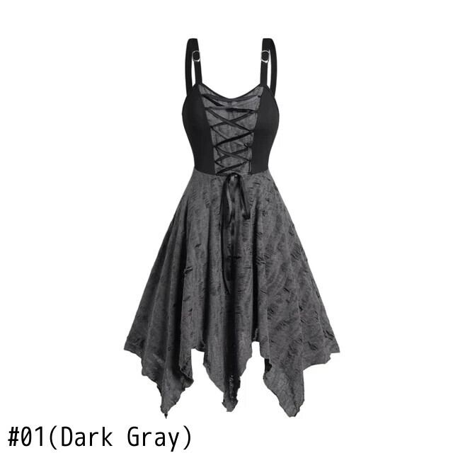 送料無料 ゴシックカラーブロックレースアップ破壊スタイルドレス調節可能なストラップ非対称裾ミディローブ アジャスタブル AE1212665655696759824293