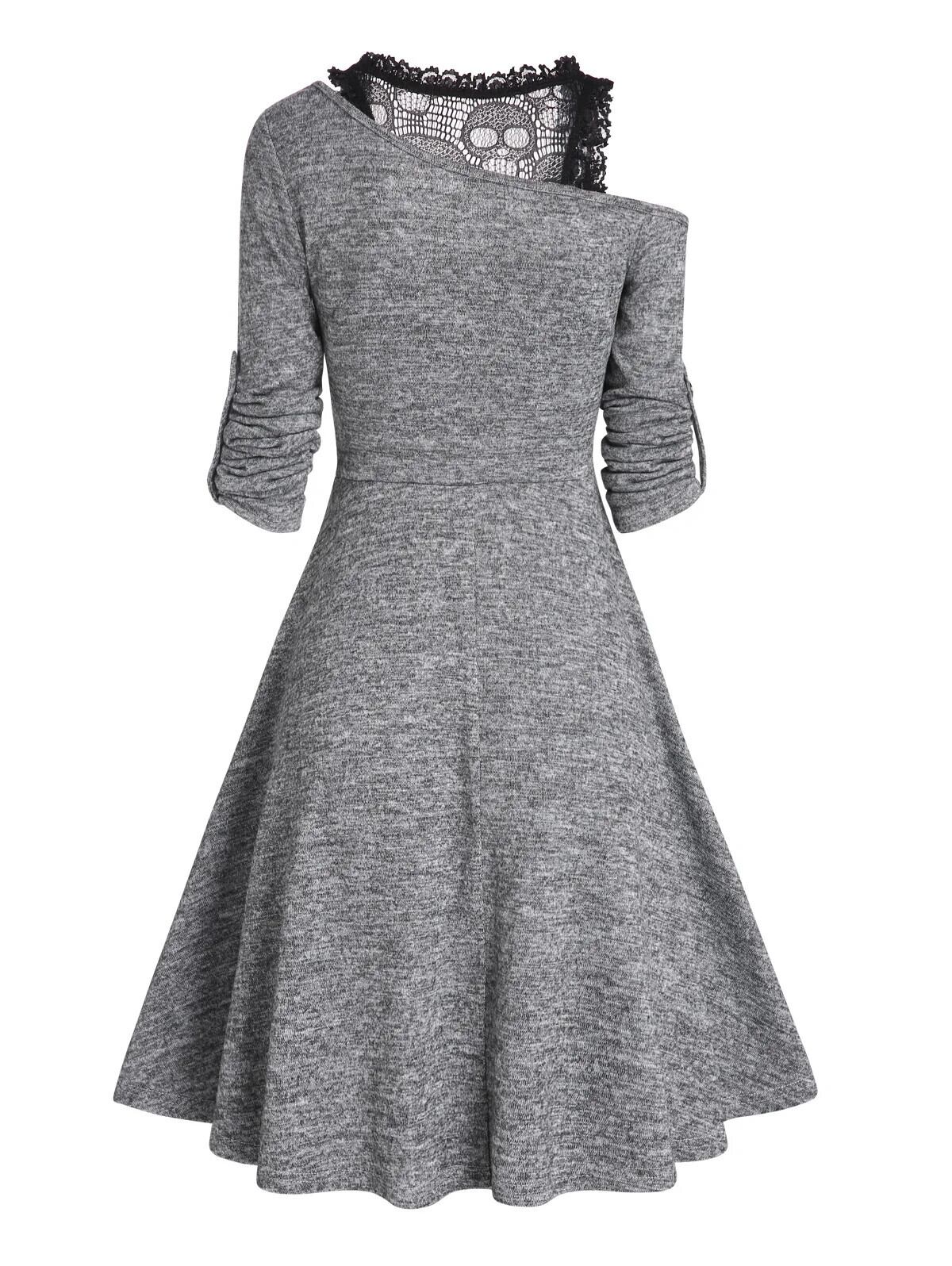 送料無料 スキューネックスカルレースミニ A ラインニットドレス女性ニットウェア A ラインフェイクツインセット Twofer 2 で 1 ローブ ファー Aライン AE1212665655620155626902