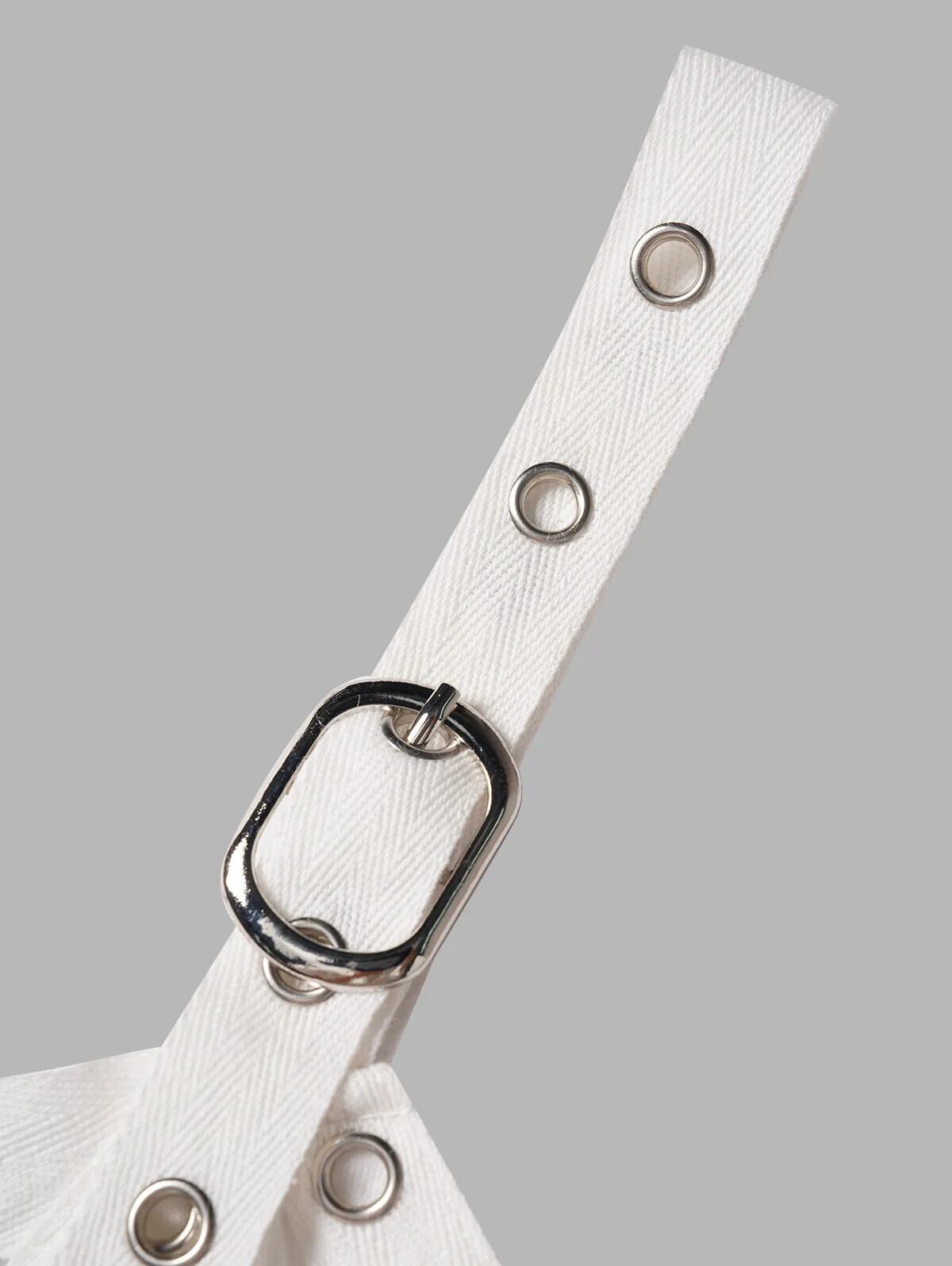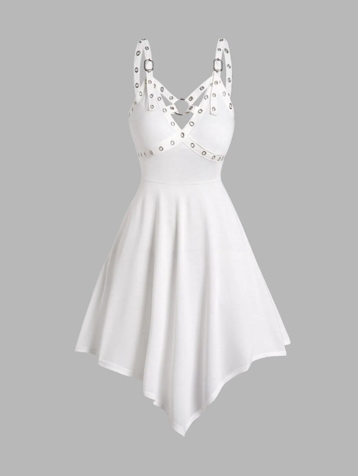 送料無料 ホワイトカラーアイレットバックルストラップ O リング非対称ドレス女性ソリッドカラーウエストノースリーブローブ 2023 指輪 AE1212665655684267978300