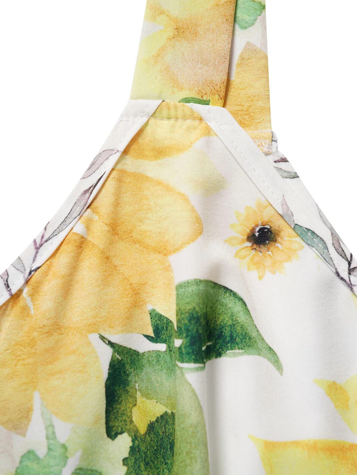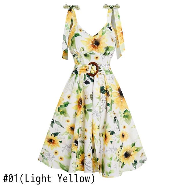送料無料 ひまわりプリントバケーションドレスビーチパーティーガーデンローブちょう結びショルダーストラップOリングセルフベルトミニジャーケン リボン ハーネス 指輪 フラワーデザイン AE1212665655650922444334