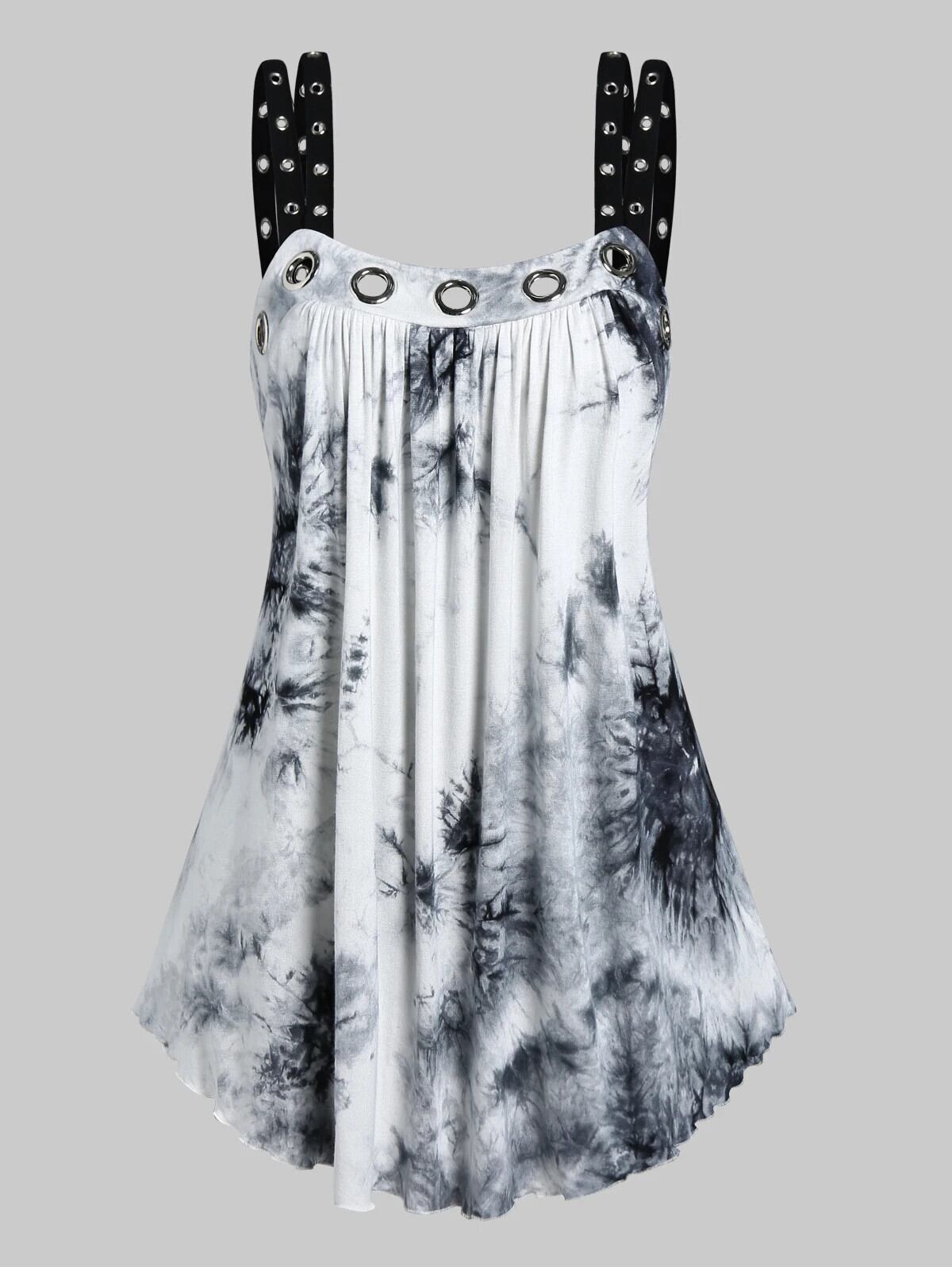 送料無料 タイダイタンクトップ女性の夏のエスニックスタイル水墨画グロメットデュアルストラップ夏のトレンディなトップ サマー 夏物 AE1212665655684003597604