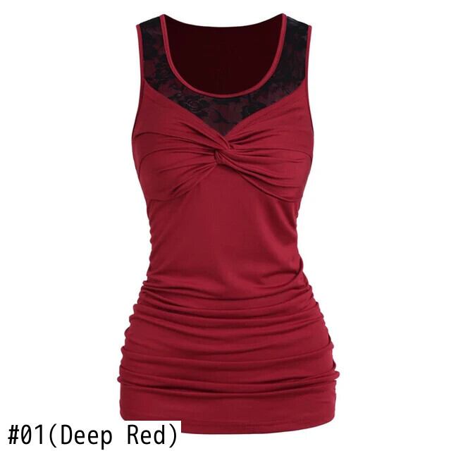 送料無料 女性シースルーローズレースパネルタンクトップツイストシャーリングTシャツソフトカラーブロック夏ノースリーブトップス サマー 夏物 AE1212665655691485860623
