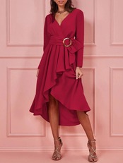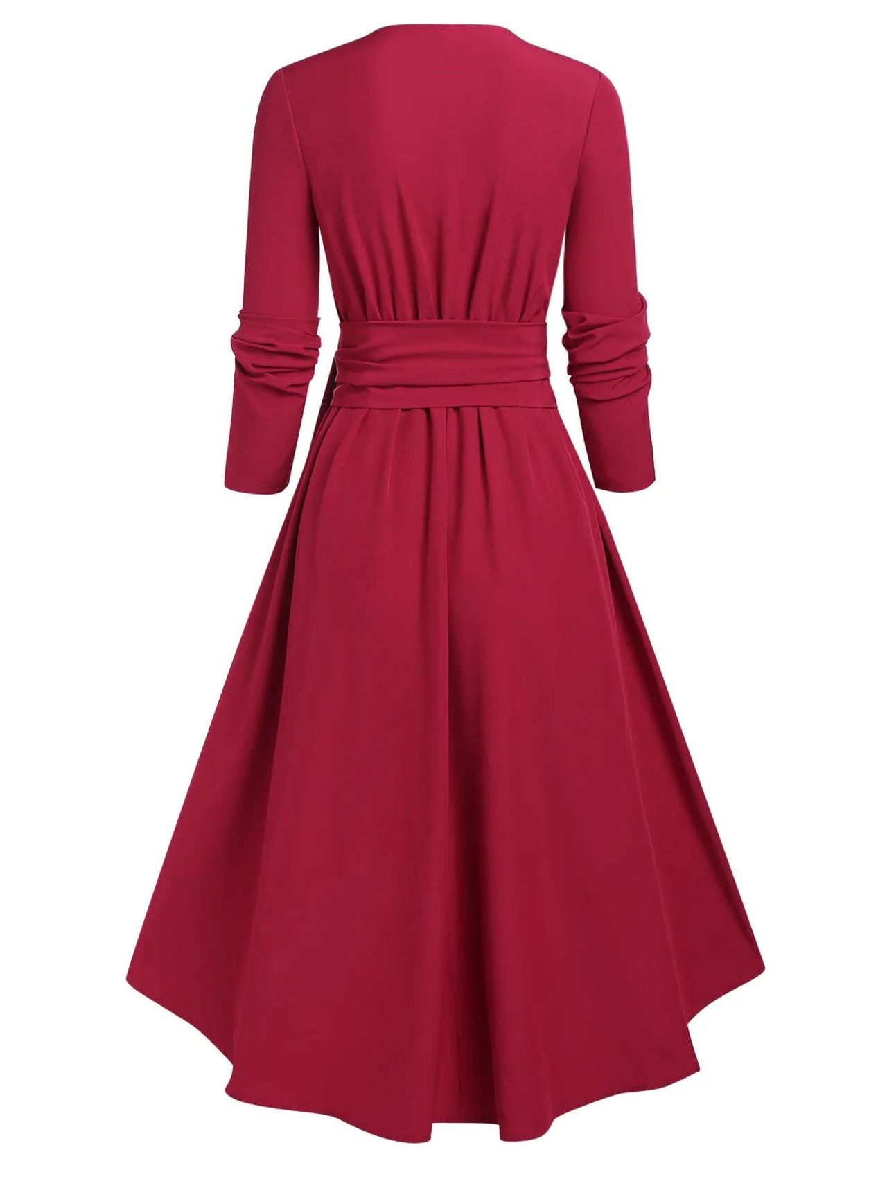 送料無料 O リング低オーバーラップ サープライス ミディドレス長袖結婚式のゲストフレアミディパーティー Vestido Feminino ロング 指輪 AE1212665655641536443923 | 女性の為の通販サイト-fashion navi