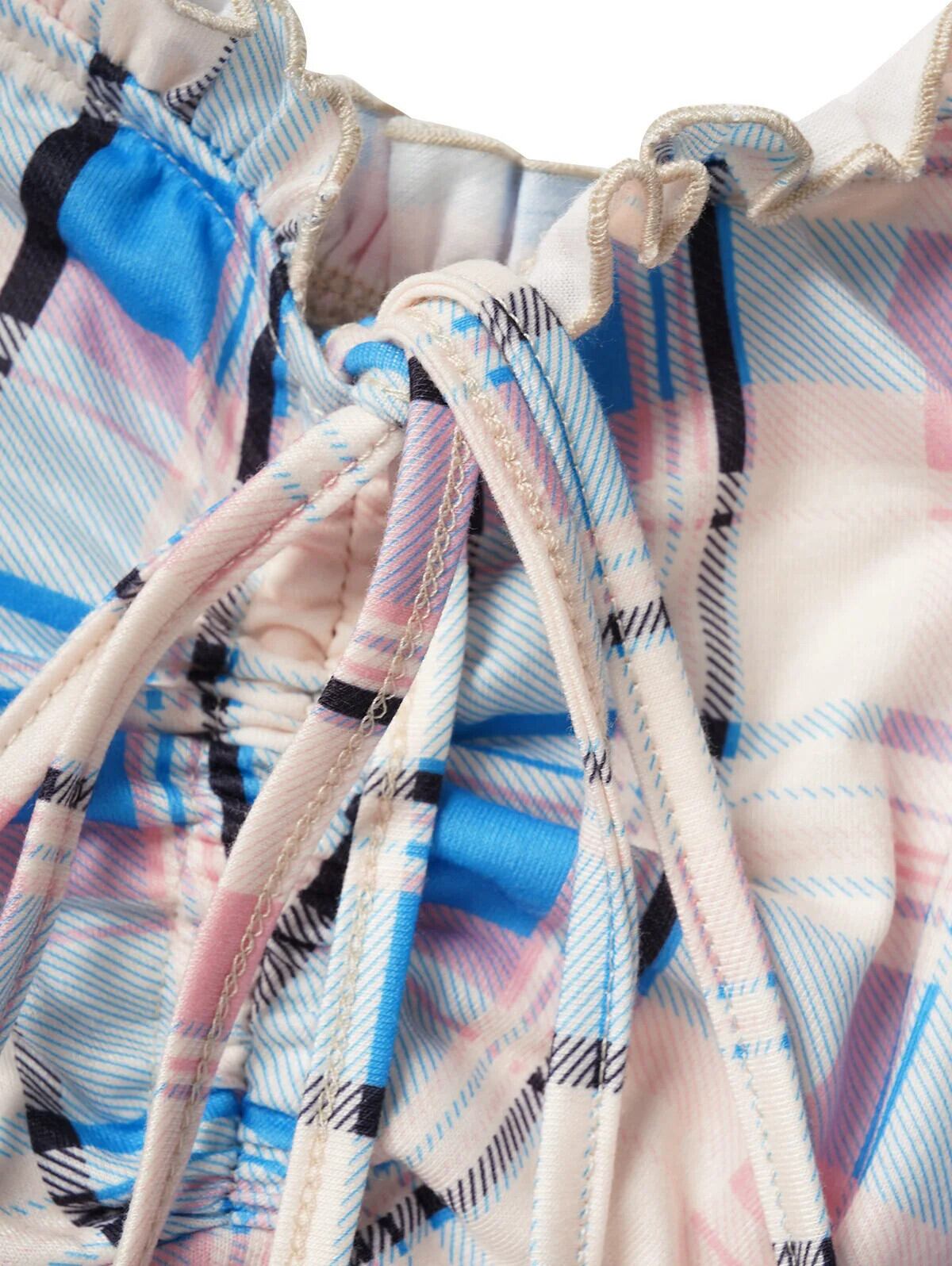 送料無料 半袖コールドショルダーチェック柄プリントパフスリーブトップス女性締めフリルウエストカーブ裾Tシャツ ショート ハーフスリーブ ラッフル AE1212665655638156102457 | 女性の為の通販サイト-fashion navi