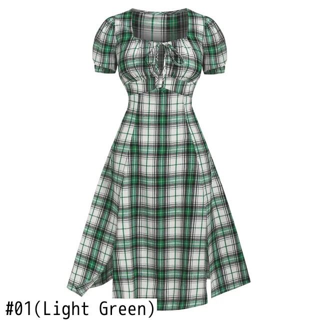送料無料 ヴィンテージチェック柄プリントミディドレス蝶ネクタイカットアウトスリットシャーリングバストパフスリーブスプリットリージェンシーフロントスリット Vestido Feminino リボン ビンテージ AE121266565562266878621 | 女性の為の通販サイト-fashion navi