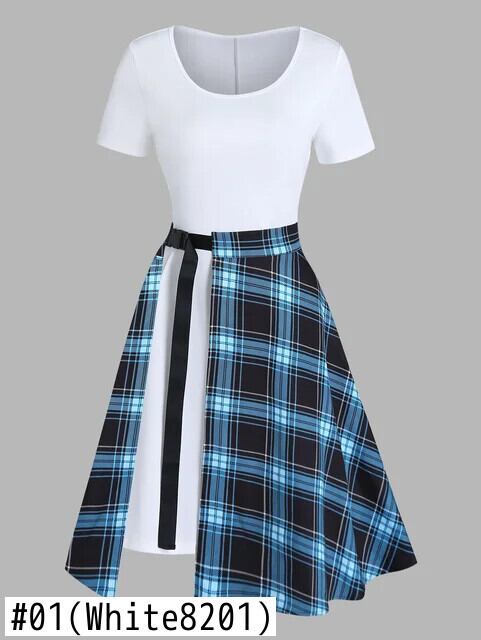 送料無料 ヴィンテージチェック柄プリントレースアップフリルノースリーブウエスト A ラインマキシドレスカラーブロックノースリーブレトロ女性 Jurken Aライン ビンテージ AE1212665655649100014930