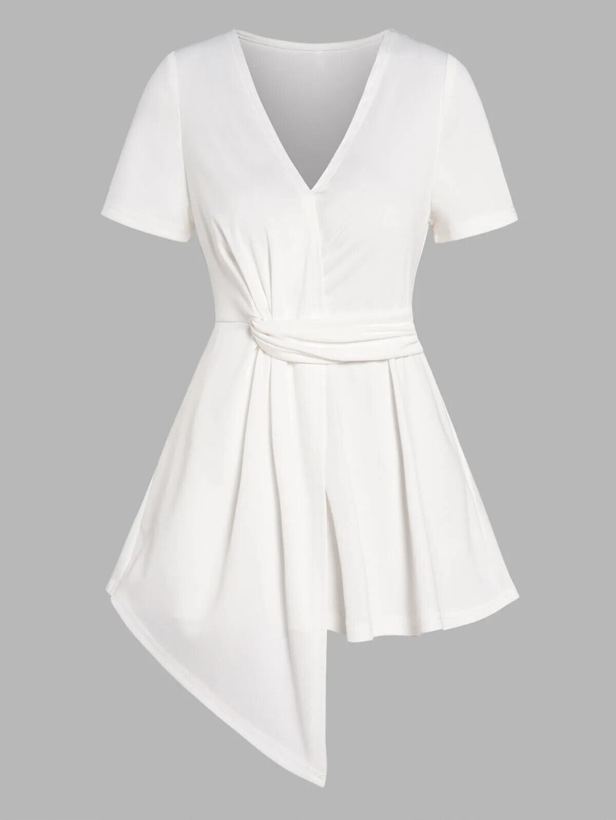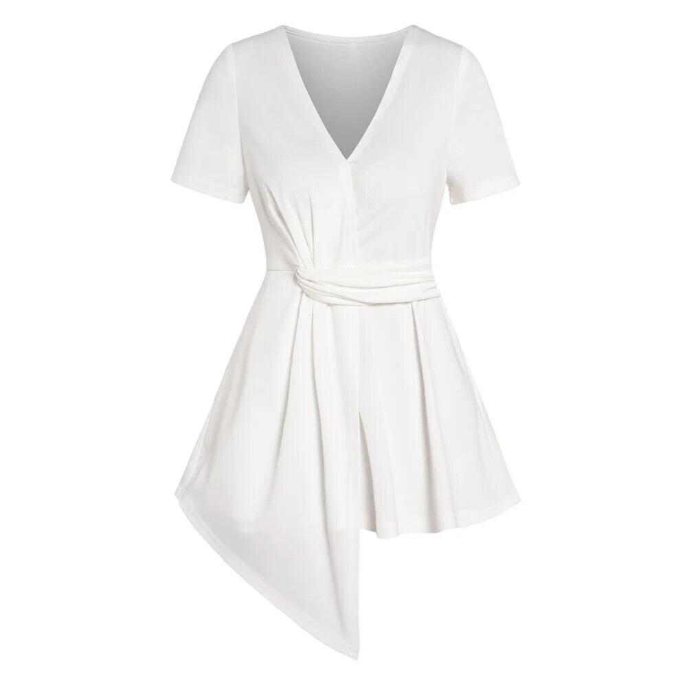 送料無料 女性無地トップス V ネックツイスト非対称裾半袖 Tシャツオフィスレディ夏 ショート ハーフスリーブ サマー 夏物 Vネック 会社 学校 通勤や通学にも AE1212665655684314165845