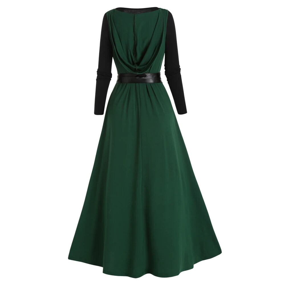 送料無料 女性ツーピースセットスリット延縄フード付きトップシアーレースインサート長袖ミニTシャツベルト付きドレス ロング ハーネス AE1212665655621668416296
