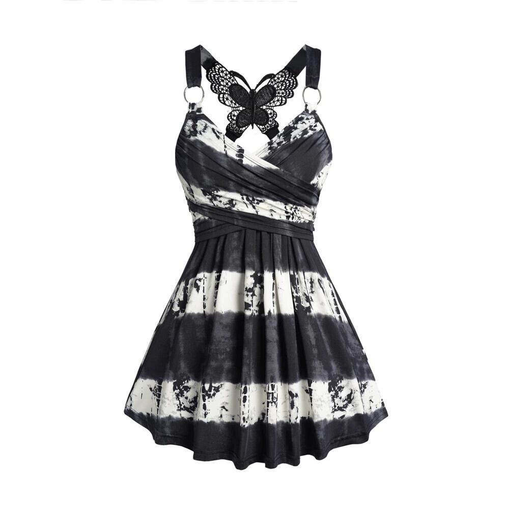 送料無料 ストリーク ダイ プリント タンクトップ レース O リング クロスオーバー トップ 夏 サマー 夏物 指輪 AE1212665655656629932813