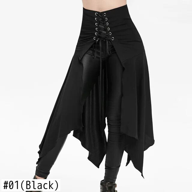 送料無料 ハロウィンゴシック非対称レースアップオープンフロントスカート無地ミディ不規則なハンカチスカート AE1212665655663299009249
