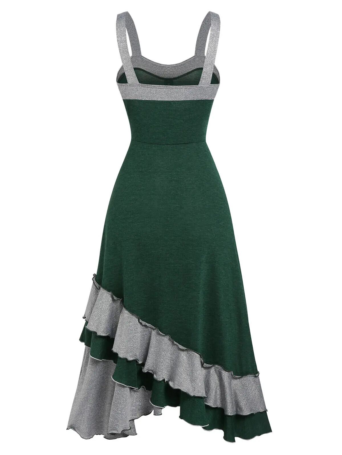 送料無料 夏コントラストカラーブロックレイヤードフリルキャミミッドカーフドレスワイドストラップソフト金色エイジローブデイリーベスト レッド サマー 夏物 AE1212665655688388419566