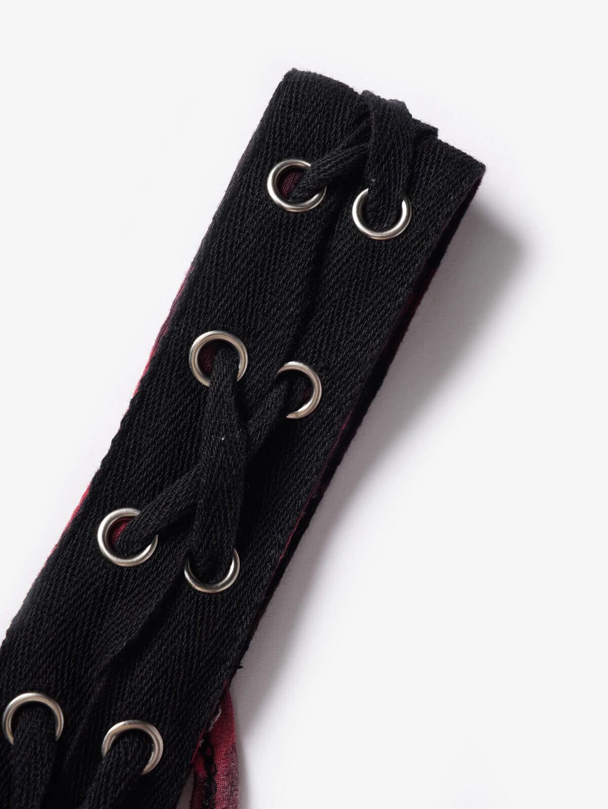 送料無料 ゴシックスタイルの赤と黒のタイダイプリントベルト付き非対称ドレス十字レースアップアイレットミディドレス レッド ブラック ハーネス AE1212665655671827628442