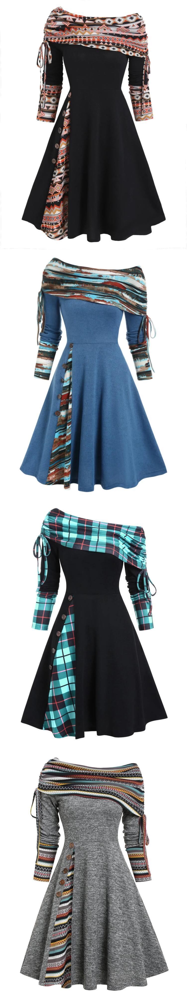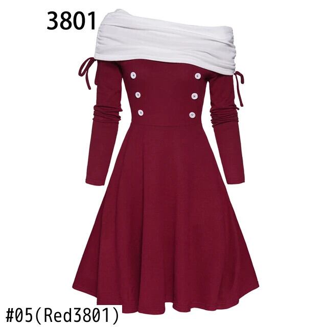 送料無料 コンバーチブルシンチストライプフレアドレス折り返しオフショルダーニットドレス女性 2023 長袖 Jurken ロング AE1212665655699325888568