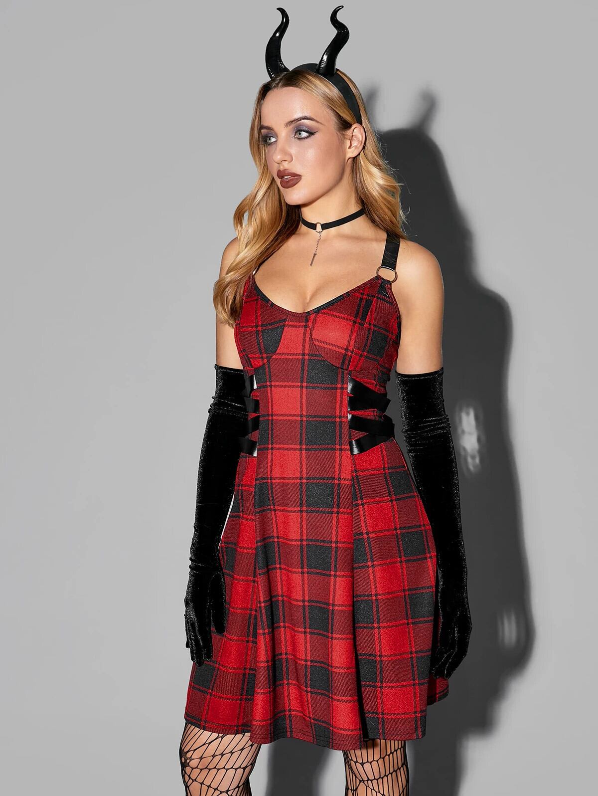 送料無料 ヴィンテージチェック柄プリントドレス女性レースアップミニ O リング A ラインローブサンドレスハーネス Vestido Feminino ベルト Aライン 指輪 ビンテージ AE1212665655695155191285