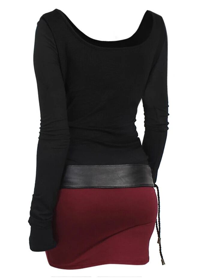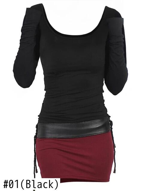 送料無料 初秋バイカラーレースアップボディコンドレススクープネックミニドレススクープネック長袖モノクロ女性スリムローブ ロング オータム 秋物 AE1212665655664144574531