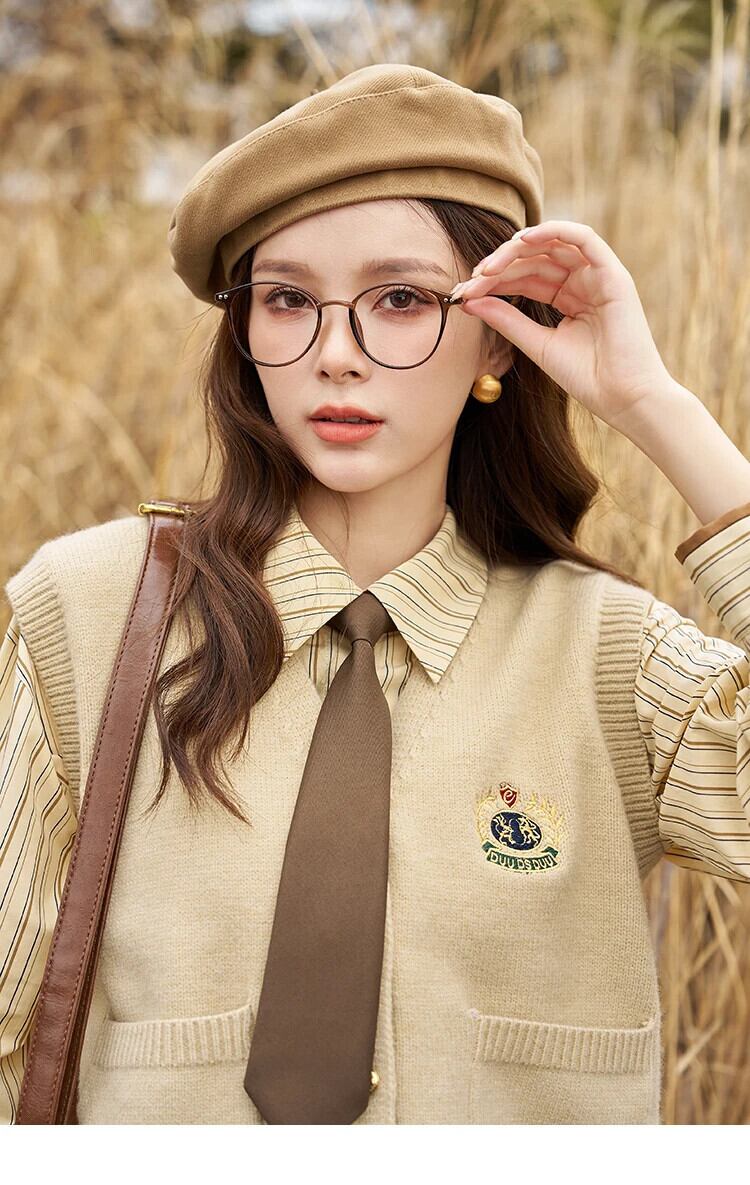 送料無料 MISHOW ブレザー 2023 秋プレッピースタイルポケット刺繍ターンダウンカラーワイドウエストダブルブレストコート MXC43W0035 オータム 秋物 AE12125556677624356961433