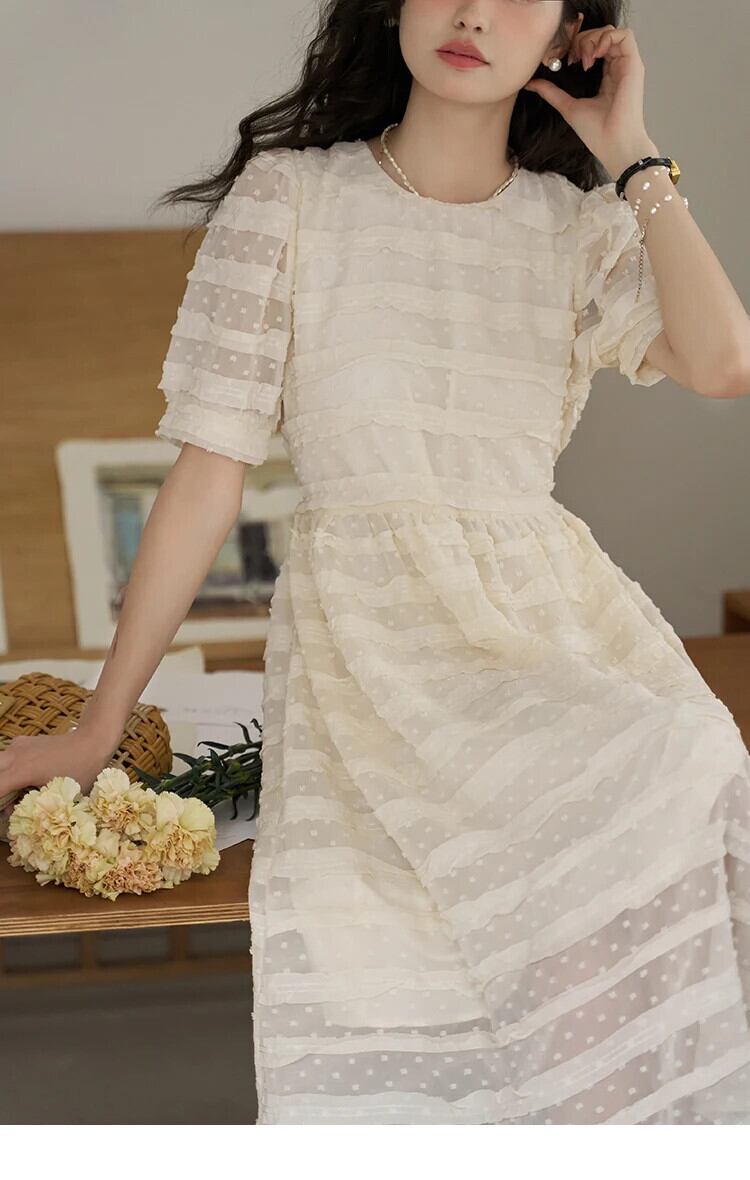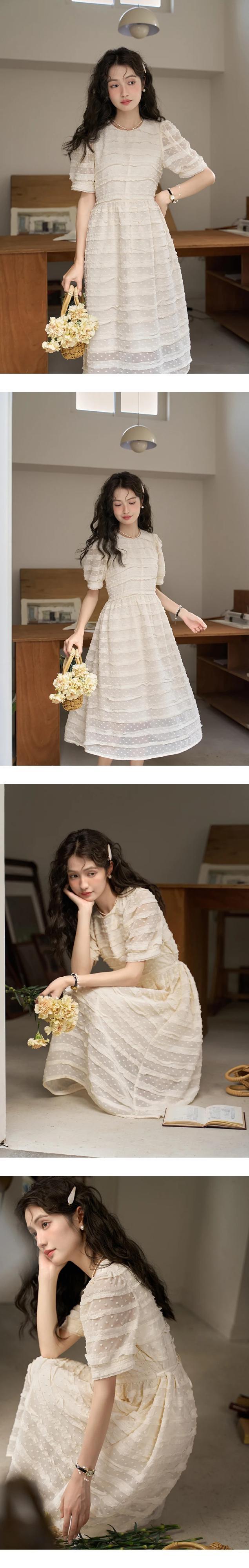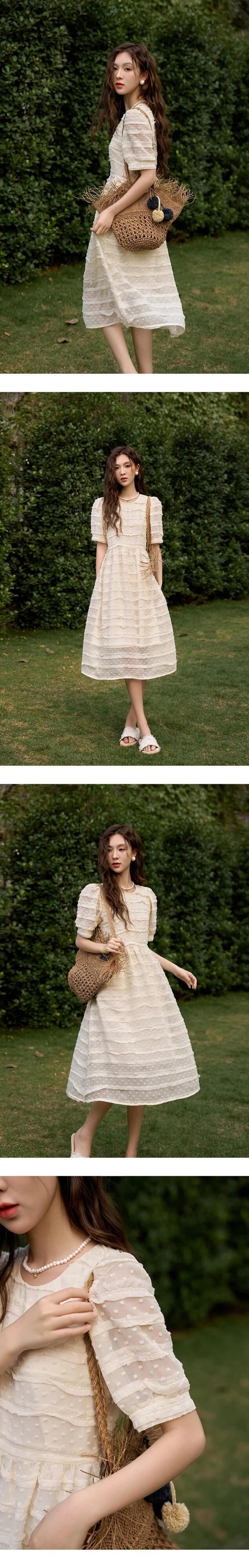 送料無料 MISHOW レディース アプリコット ドレス 2023 夏 スイート 半袖 Aライン パフスリーブ ウエスト O ネック ミディドレス MXC33L1357 ショート ハーフスリーブ 大人ガーリー スウィート キュート カジュアル サマー 夏物 Oネック AE12125556677662096356243